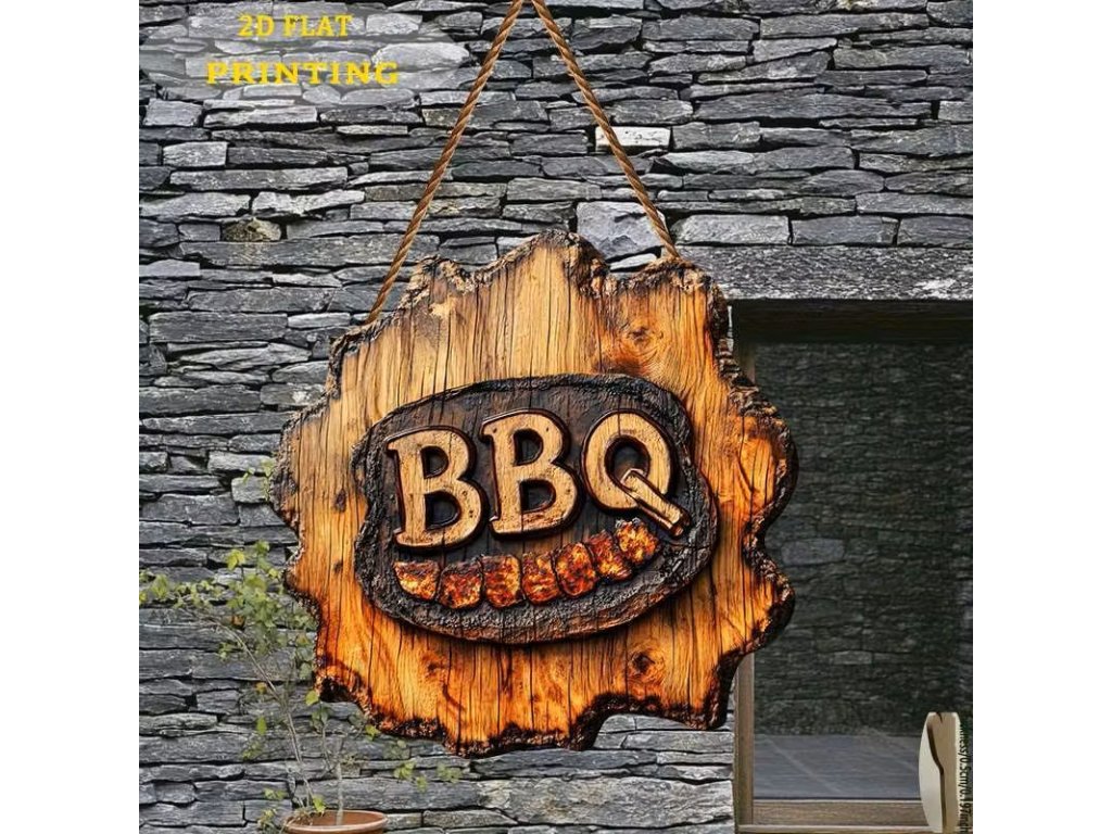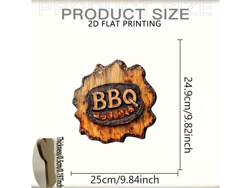 2D kulatá dřevěná cedule BBQ pr. 25 cm