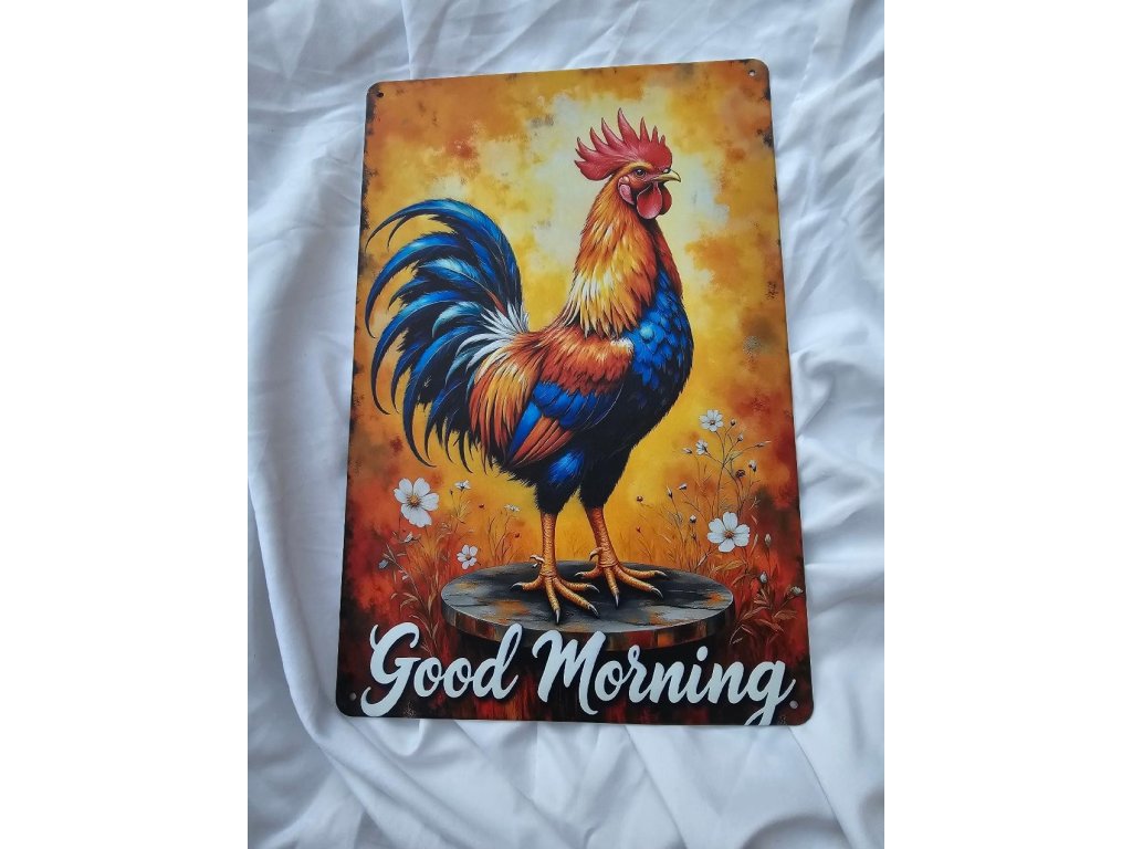 2D plechová cedule Dobré ráno s kohoutem 20 x 30 cm