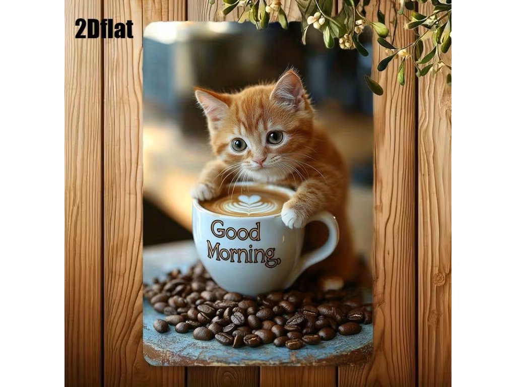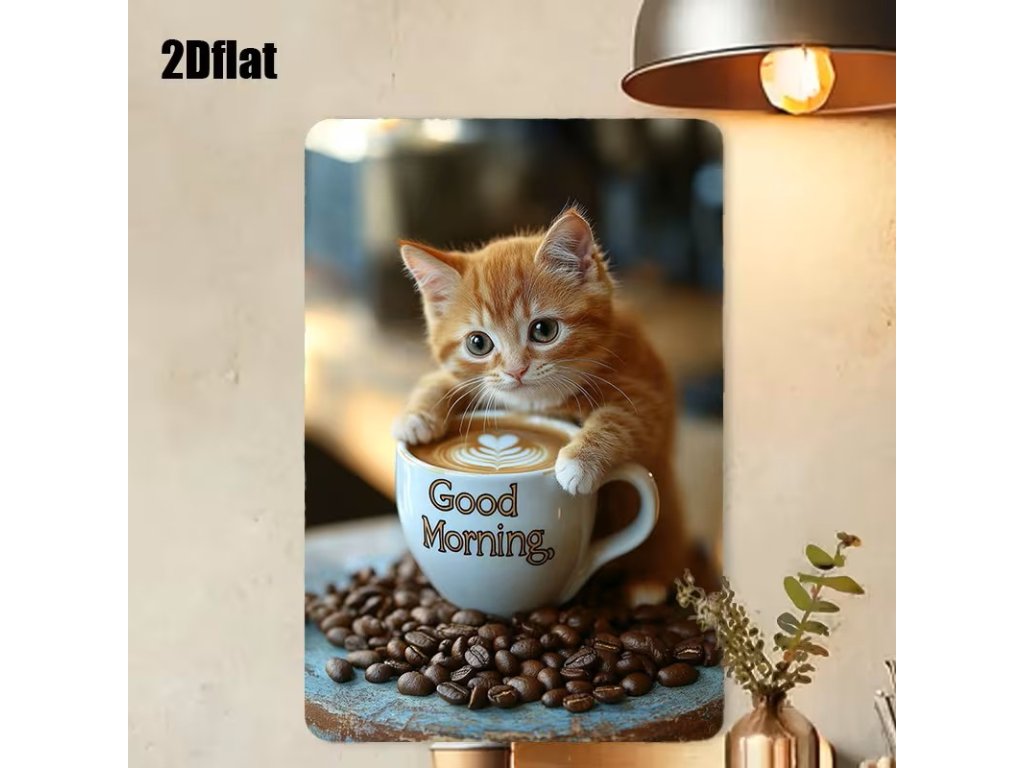 2D plechová cedule Dobré ráno s kotětem 20 x 30 cm