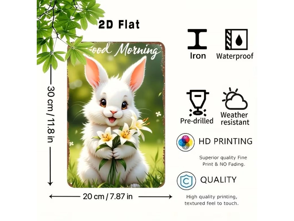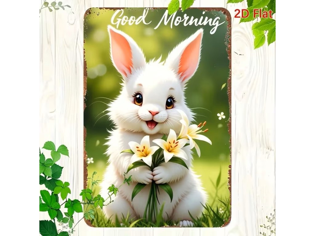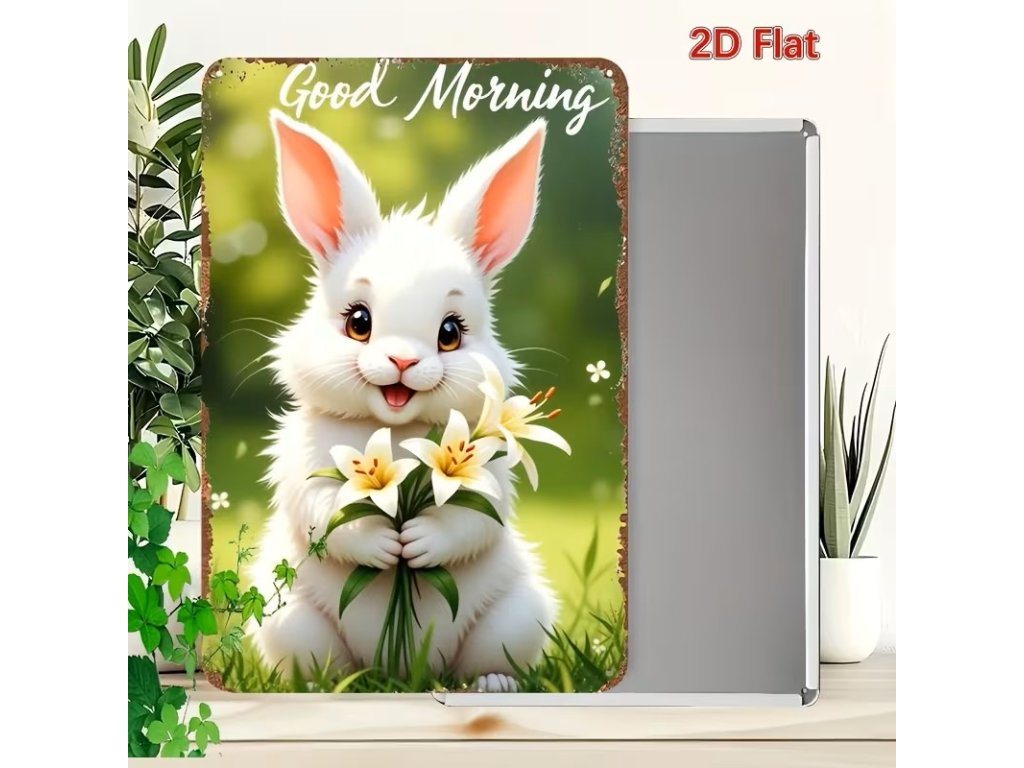 2D plechová cedule Dobré ráno s králíčkem 20 x 30 cm