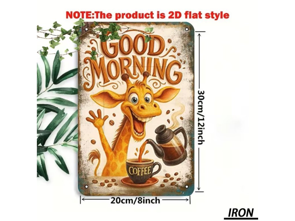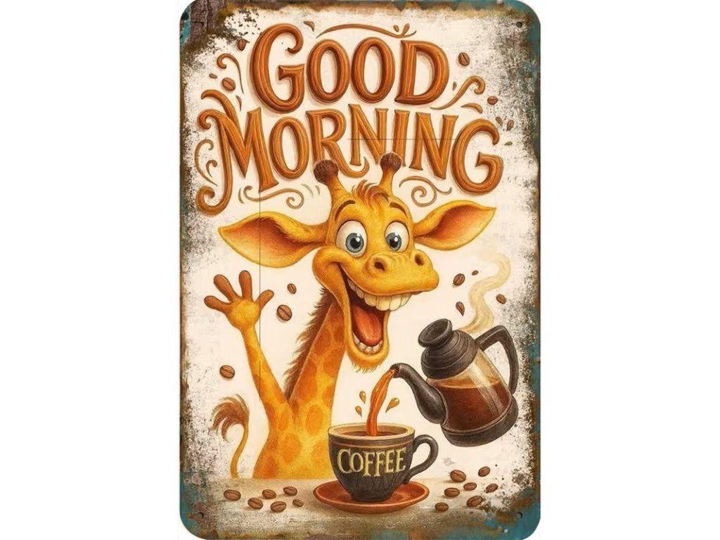 2D plechová cedule Dobré ráno s žirafou 20 x 30 cm