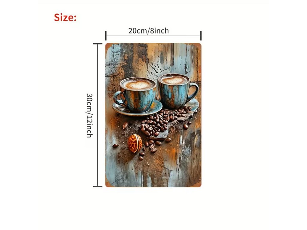 2D plechová cedule Dva hrnky kávy 20 x 30 cm