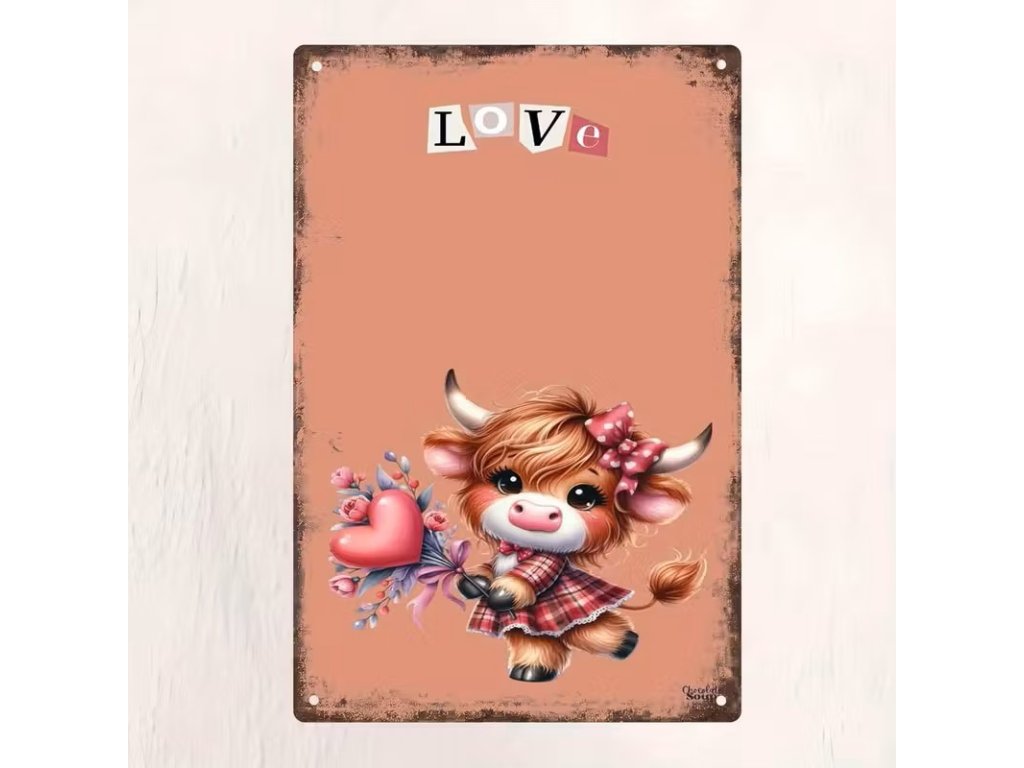 2D plechová cedule Kravička se srdíčkem 20 x 30 cm
