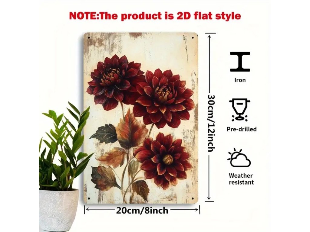 Nádherná dekorace s motivem květiny. Materiál: Kov. Možno umístit v interiéru i ven