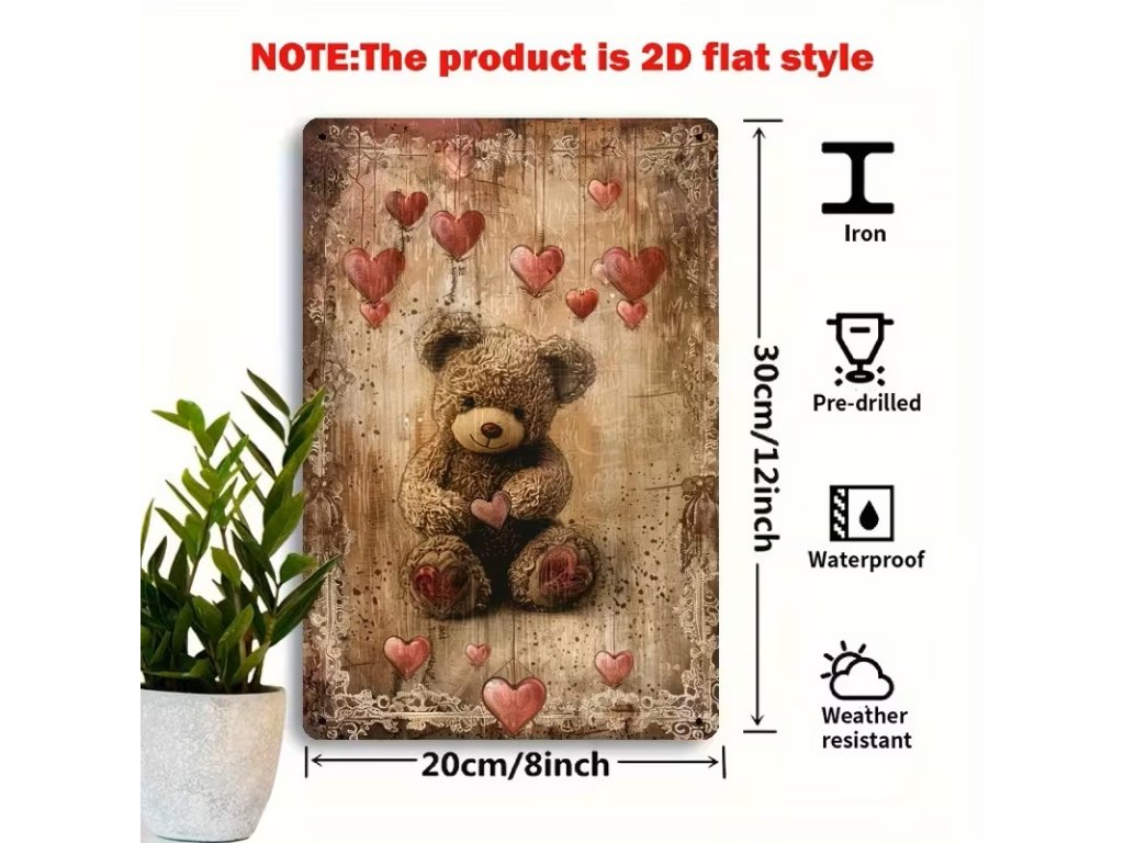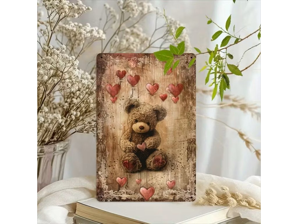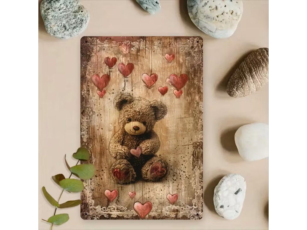 2D plechová cedule Medvídek a srdíčka 30 x 20 cm