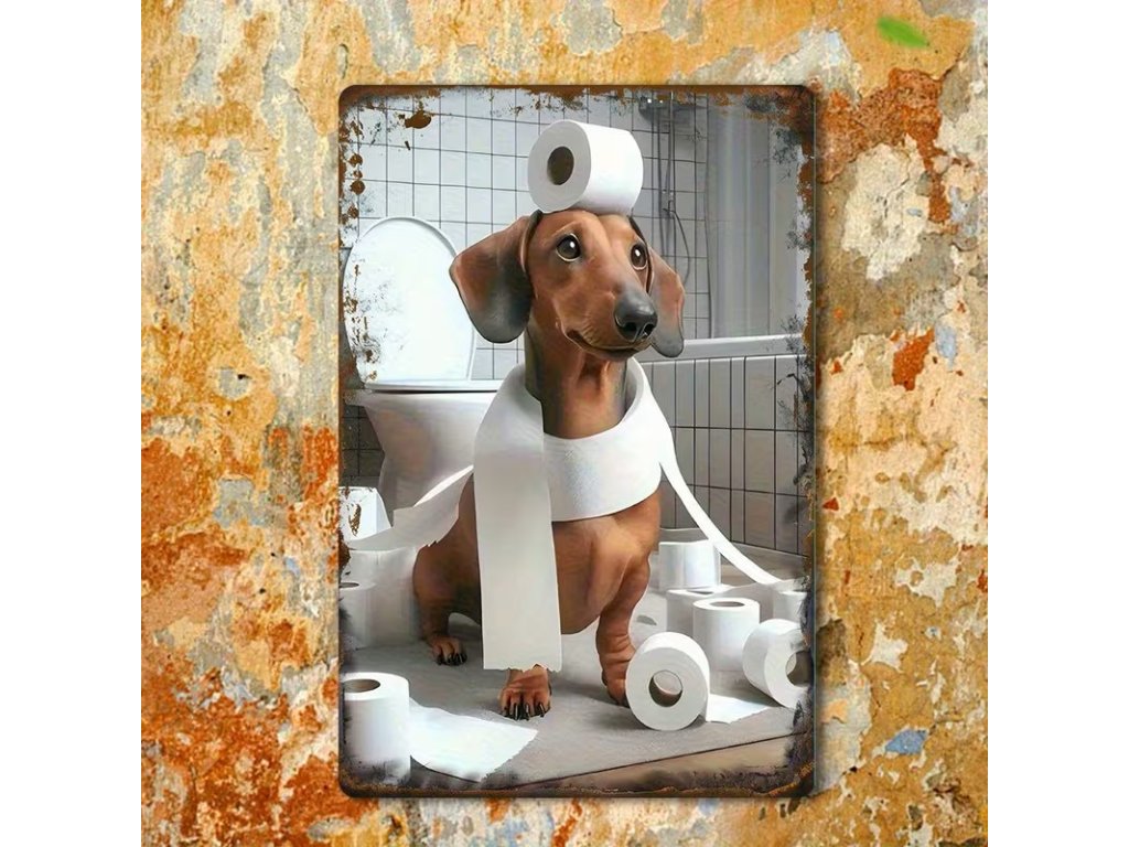 2D plechová cedule Šťastný jezevčík 20 x 30 cm