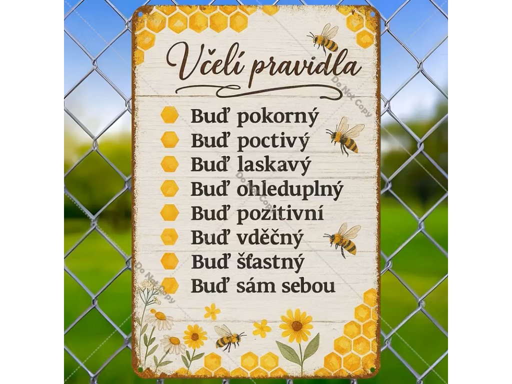 2D Plechová cedule Včelí pravidla 30x20 cm