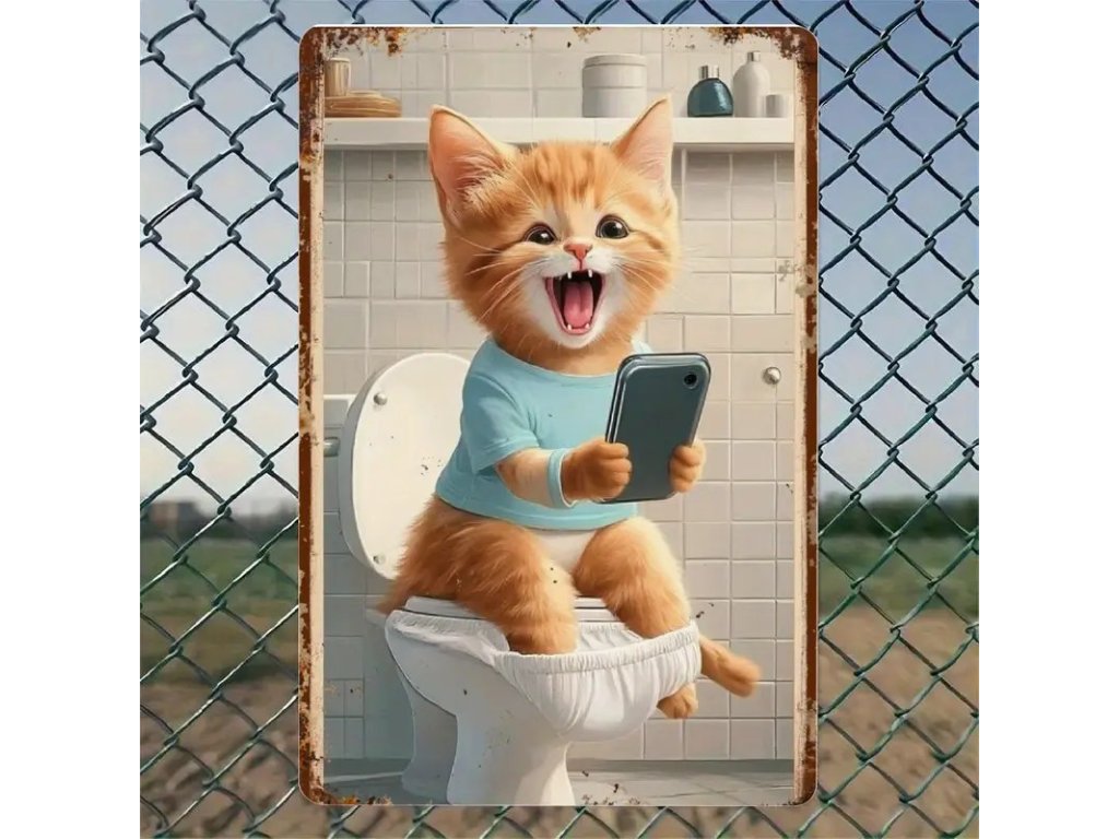 2D Plechová cedule Vysmátá číča 30 x 20 cm