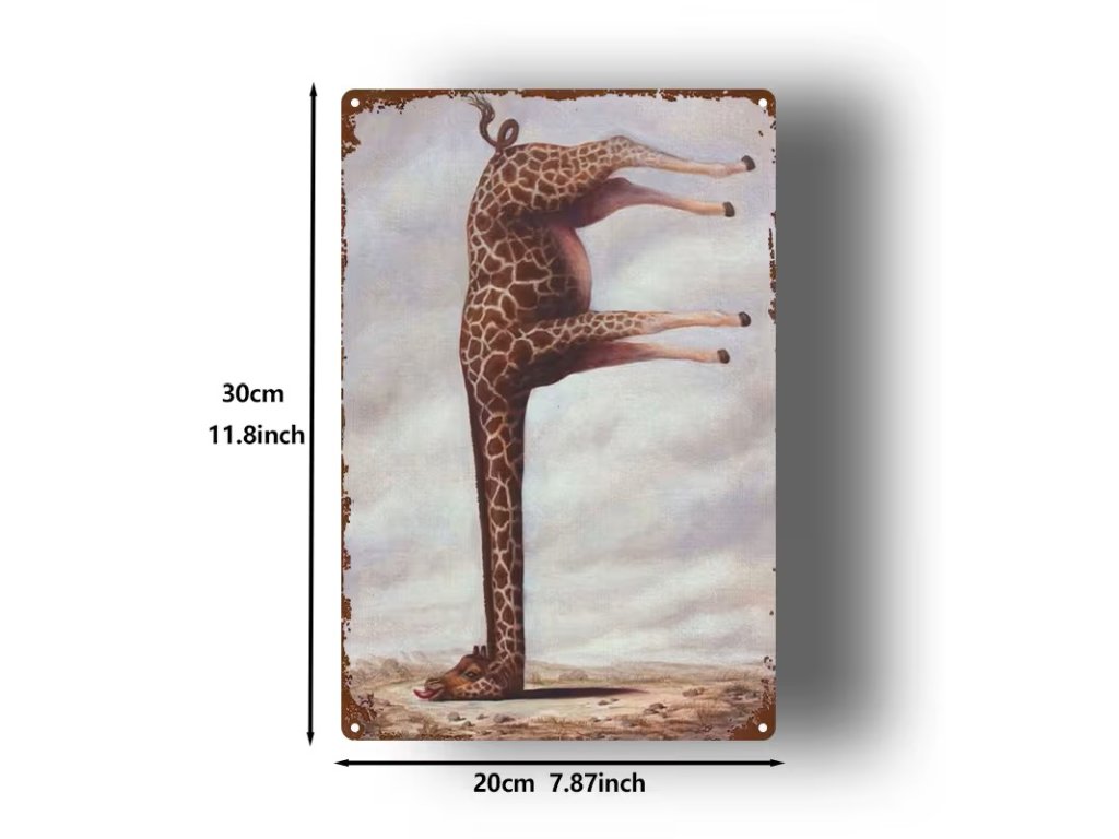 2D plechová cedule Žirafa na hlavě 20 x 30 cm