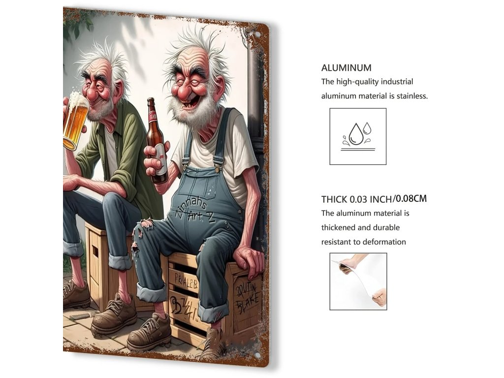 Kovová cedule Dědové s pívem - 20 x 30 cm. POŠKOZENO