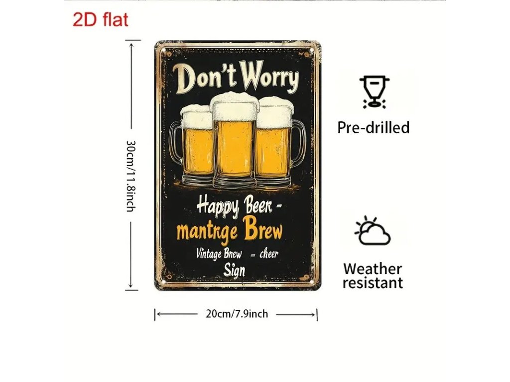 Kovová cedule Nebuď smutný, dej si pívo 30 x 20 cm. Krásná cedule například někam k venkovnímu sezení