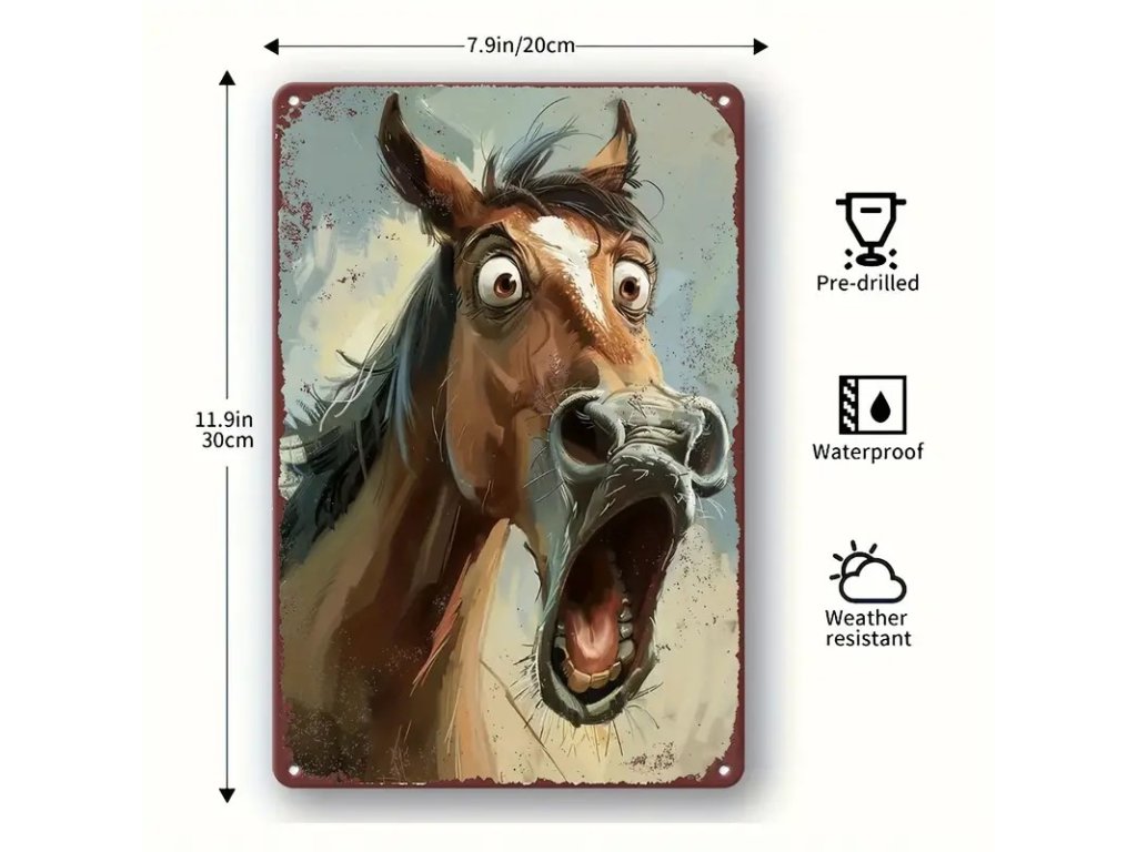 Kovová cedule Vyděšený kůň 30 x 20 cm. Vhodná do interiéru i ven
