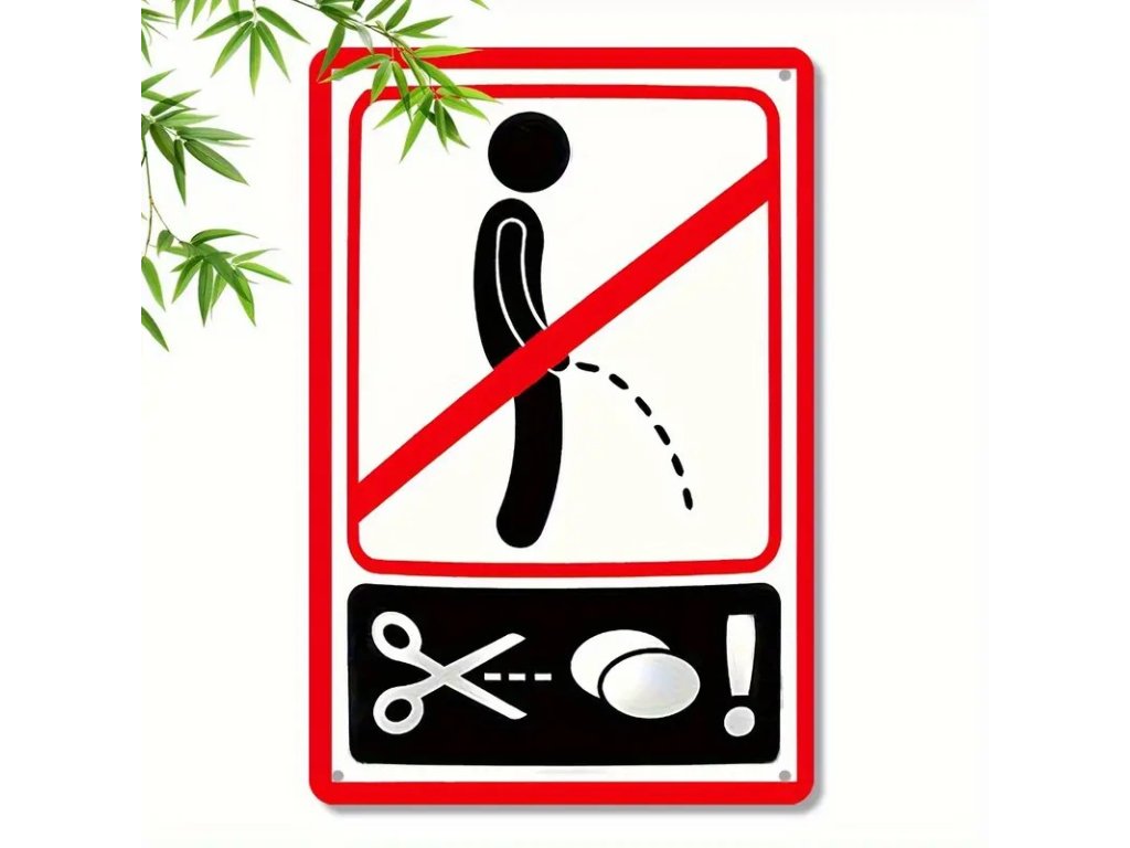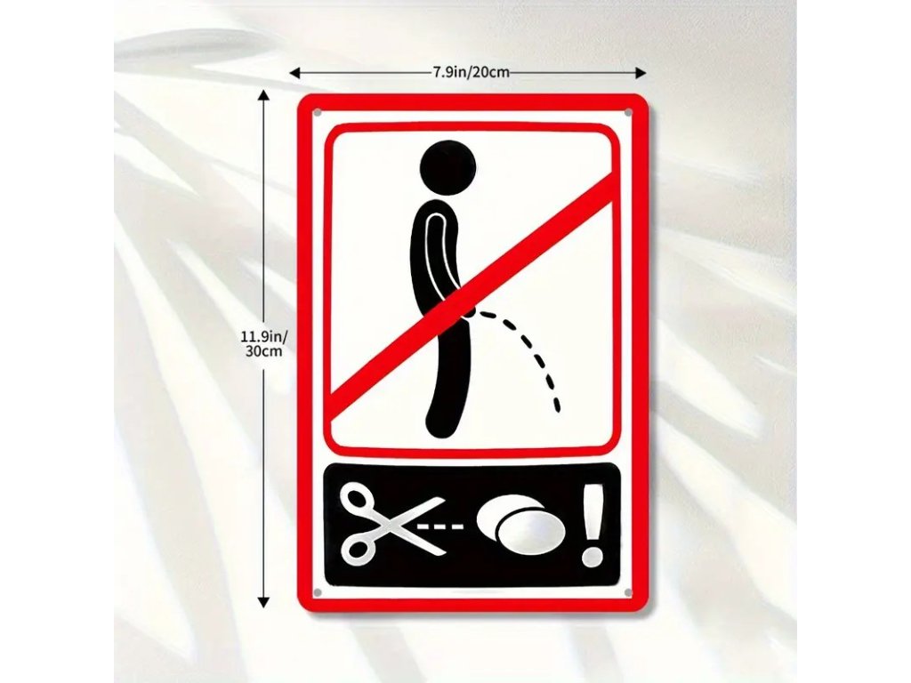 Kovová cedule Žádné čůrání, nebo...30 x 20 cm. Tak tady je doporučené umístění jasné! Dámy, pověste ji venku všude tam, kam nemají chodit pánové na malou.