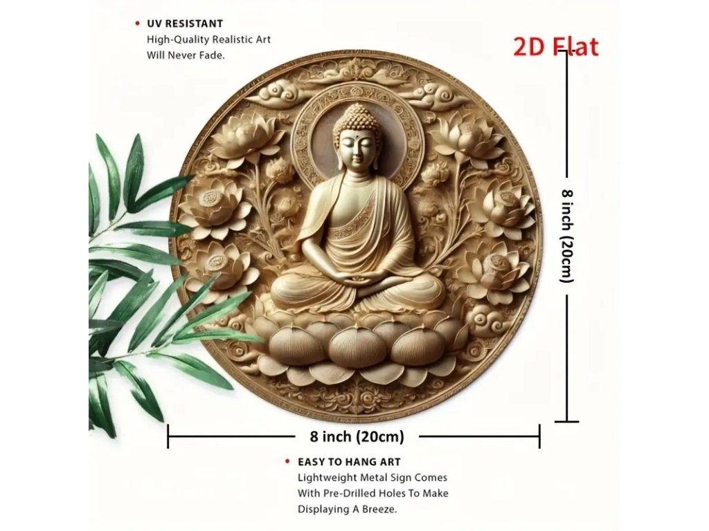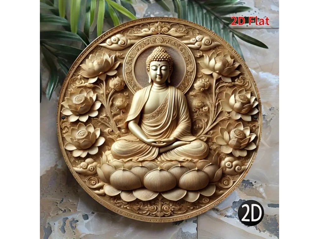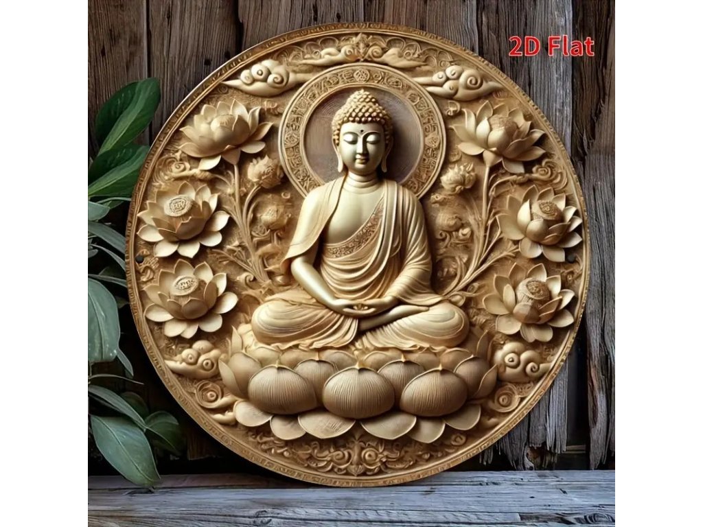 Kovová kulatá cedule Buddha. Průměr 20 cm