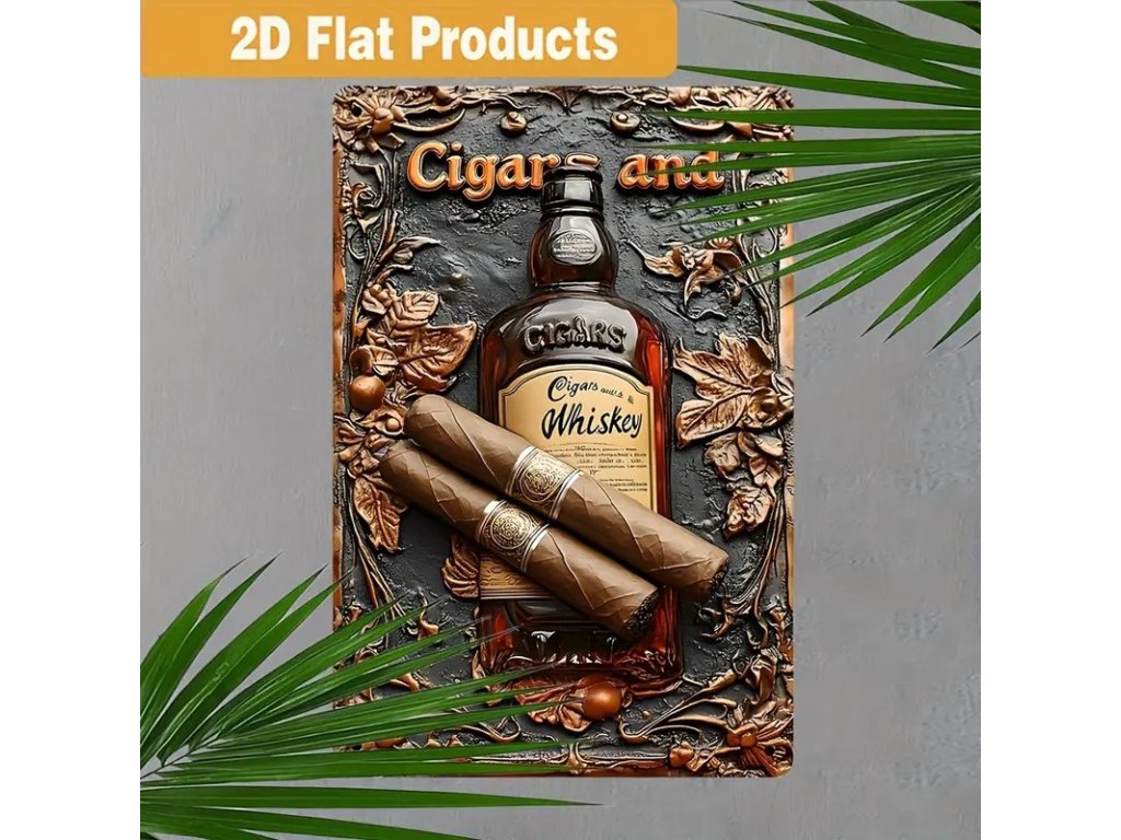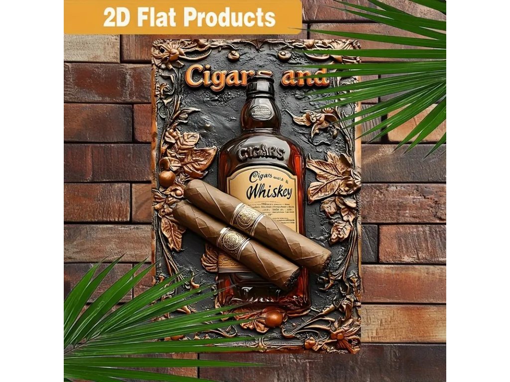 Kovová nástěnná cedule Doutníky + whiskey
