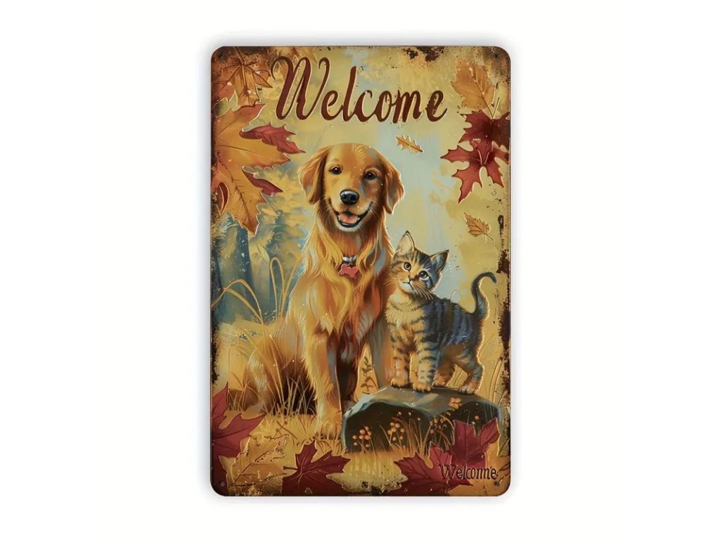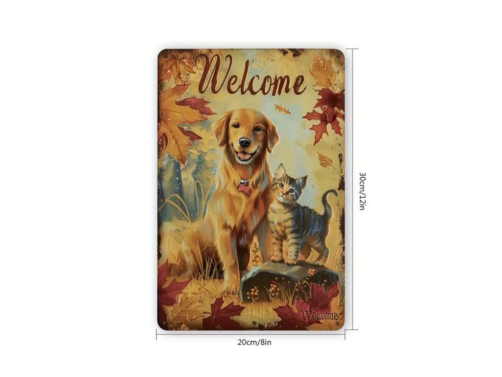 2D Kovová nástěnná cedule Welcome pes a kočka 30 x 20 cm