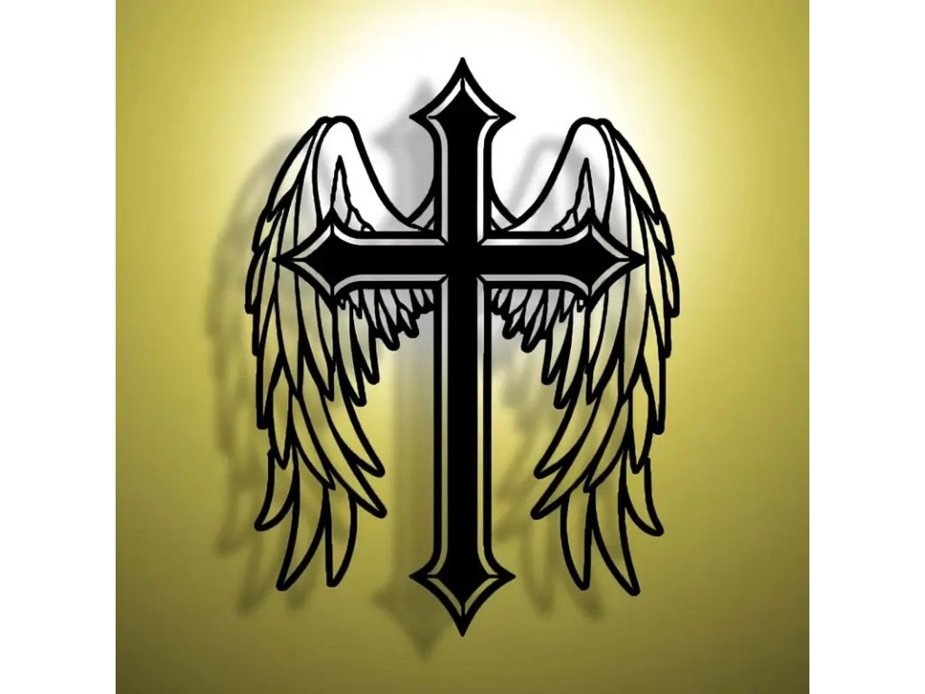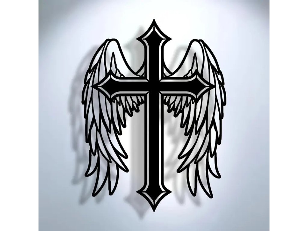 Kovová nástěnná dekorace Kříž a andělská křídla 30 x 23 cm