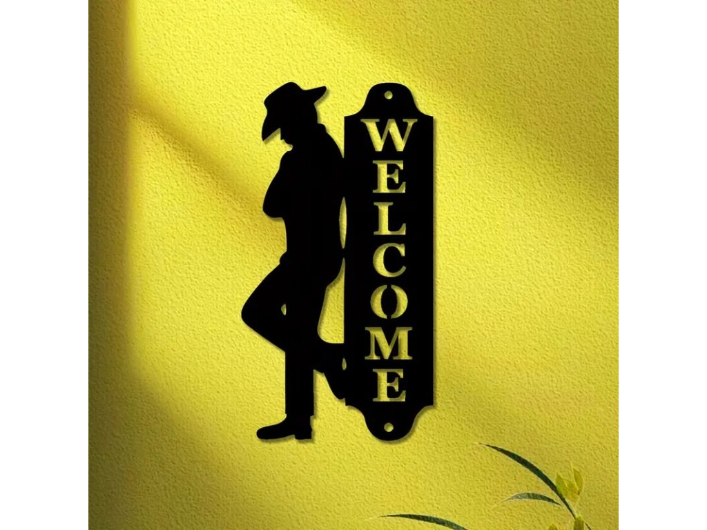 Kovové nástěnné umění Welcome 30 x 16 cm. Vítací nápis vhodný na viditelné místo ke vstupu nebo i k brance