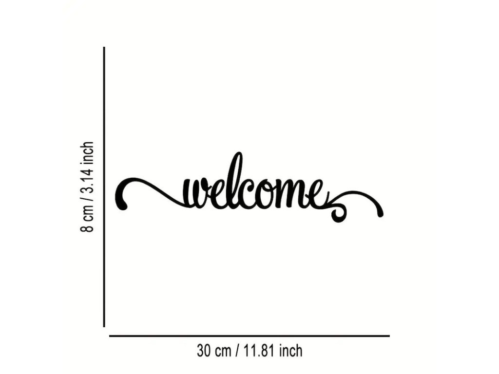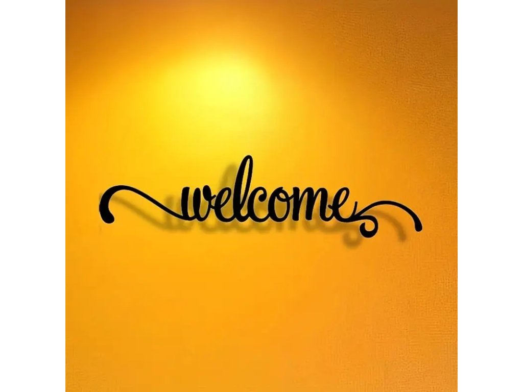 Kovový nápis Vítejte. Vhodné na zavěšení na zeď u vchodu