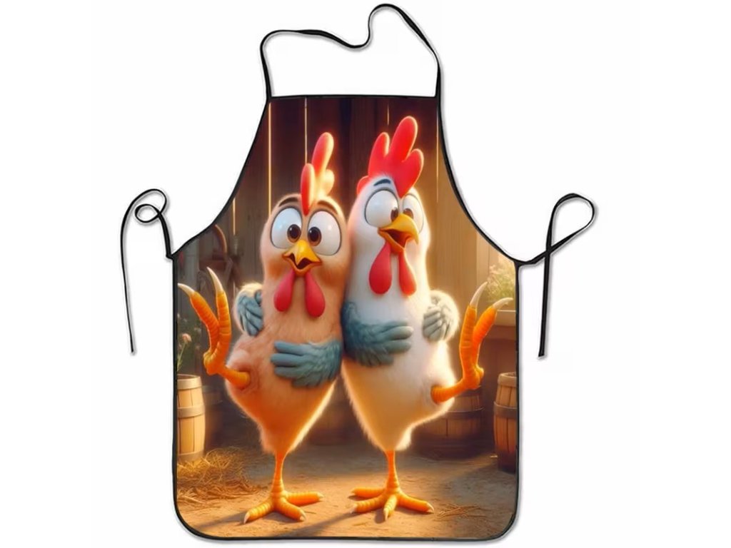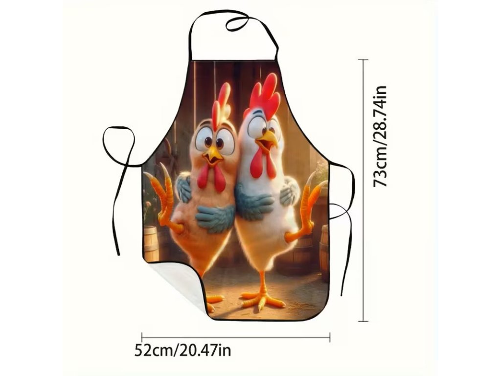 Krásná kuřecí zástěra pro každou kuchařinku. Velikost je uvedena na fotografii