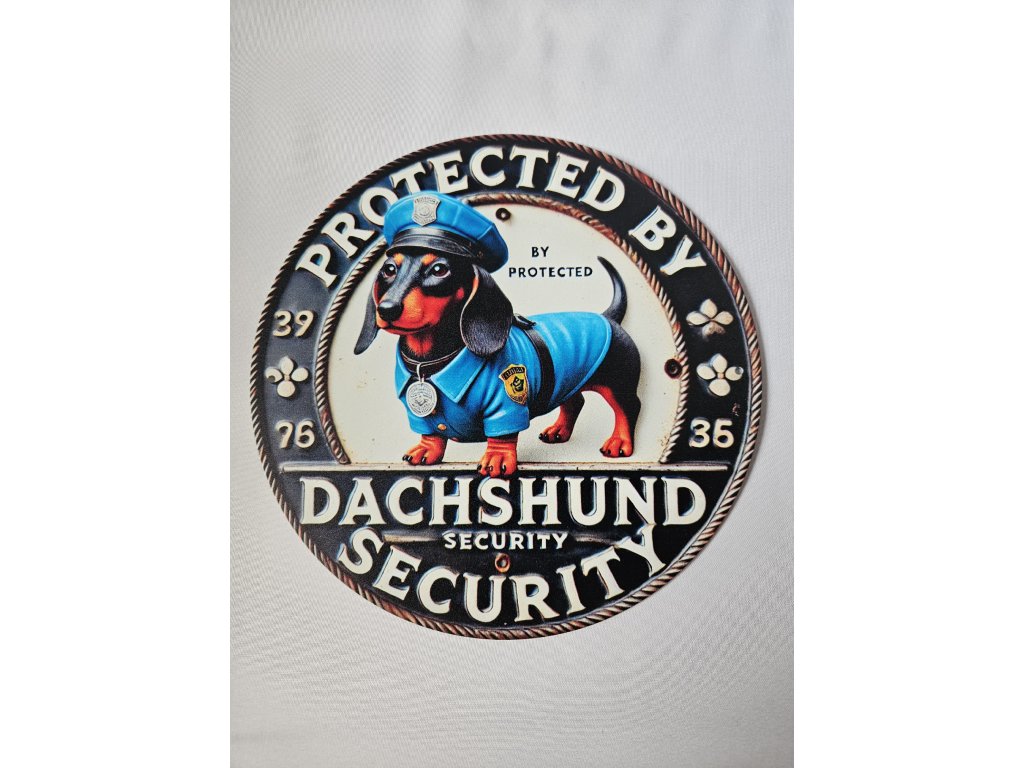 Kulatá kovová cedule Tady hlídá pan Majer Průměr 20 cm