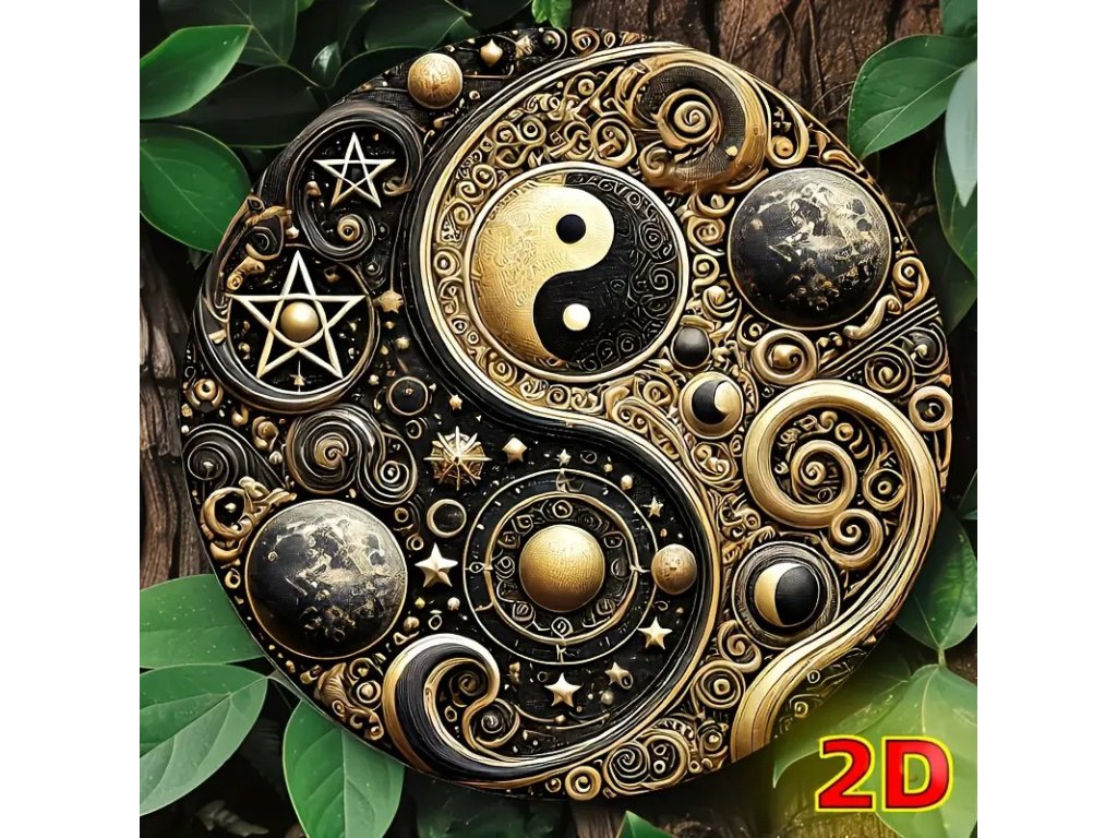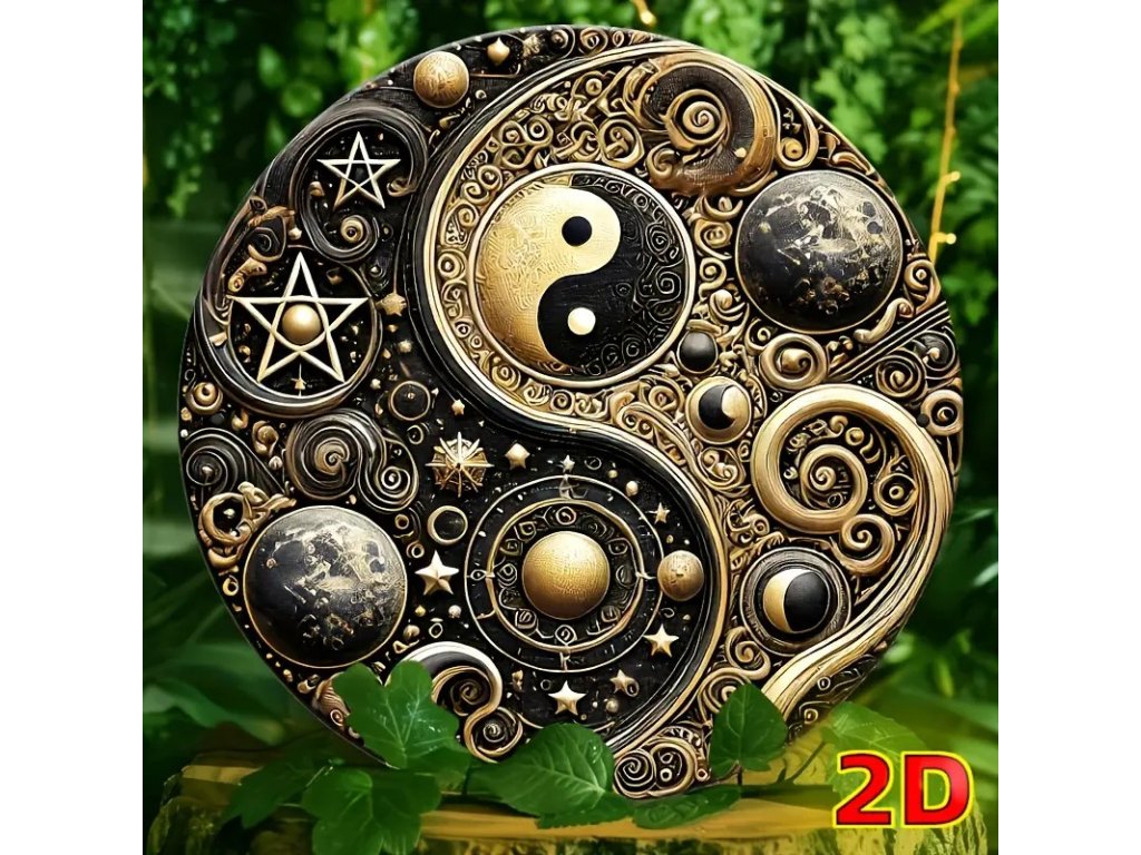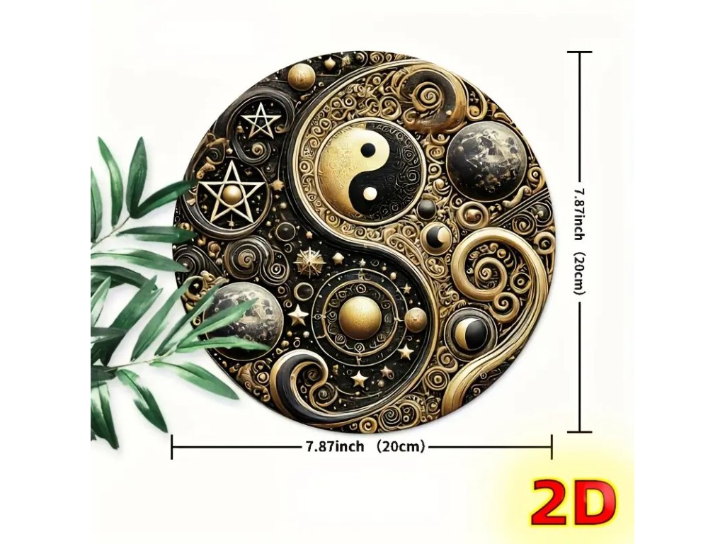 2D Kulatá kovová cedule Yin yang . Průměr 20 cm