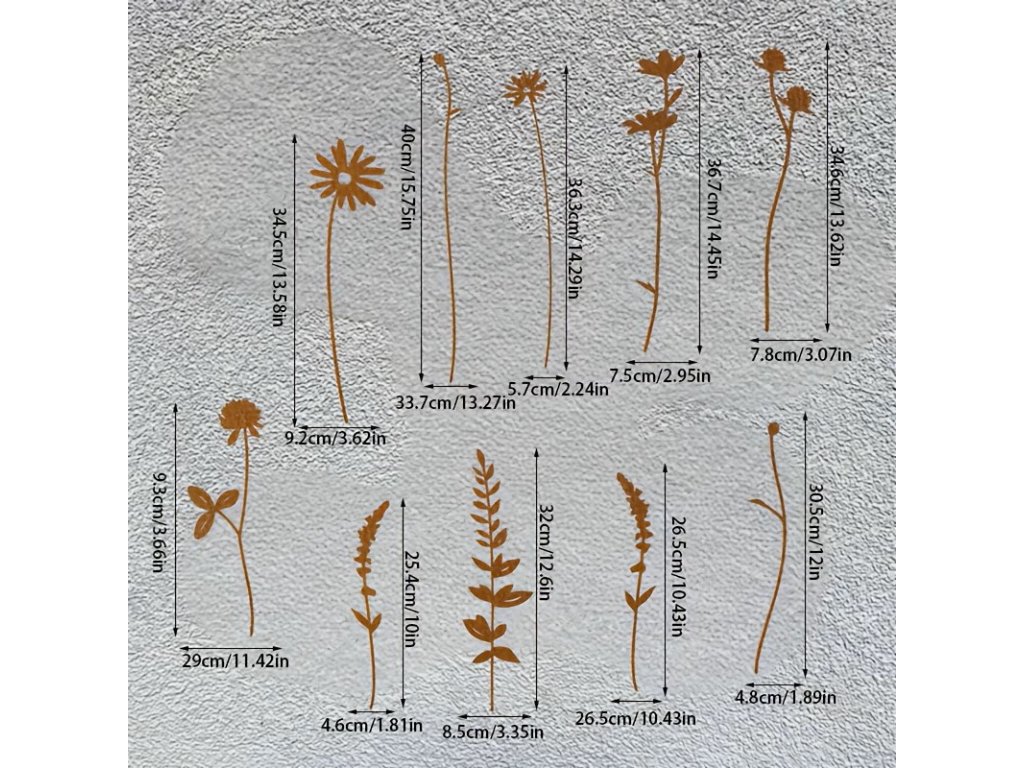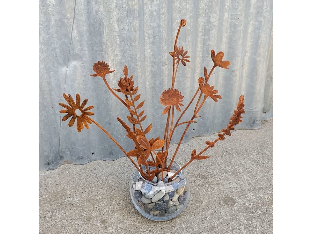 Kytice deseti kovových květů a listů