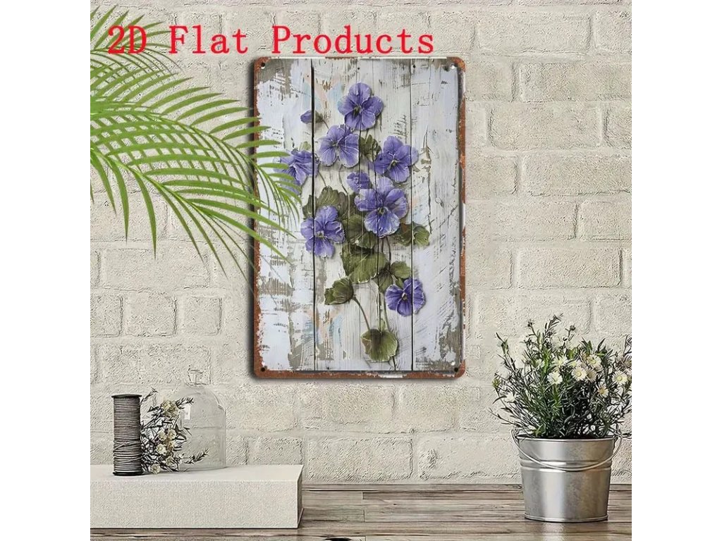 Nástěnná kovová cedule. Fialky 30 x 20 cm. POŠKOZENO. SLEVA
