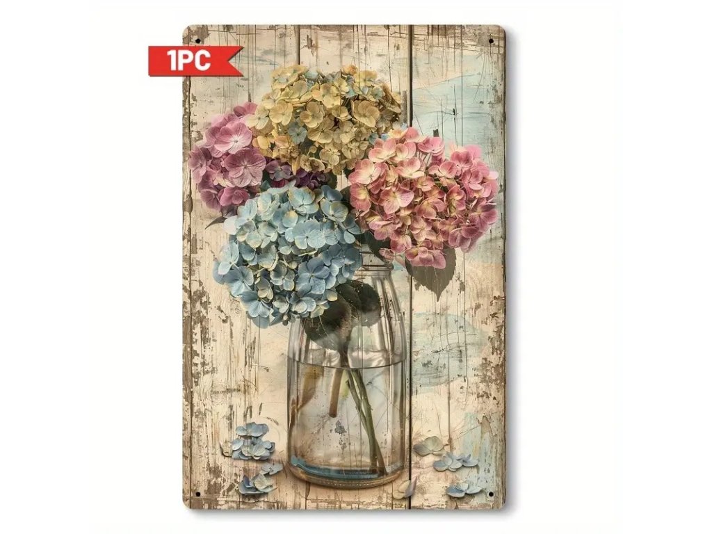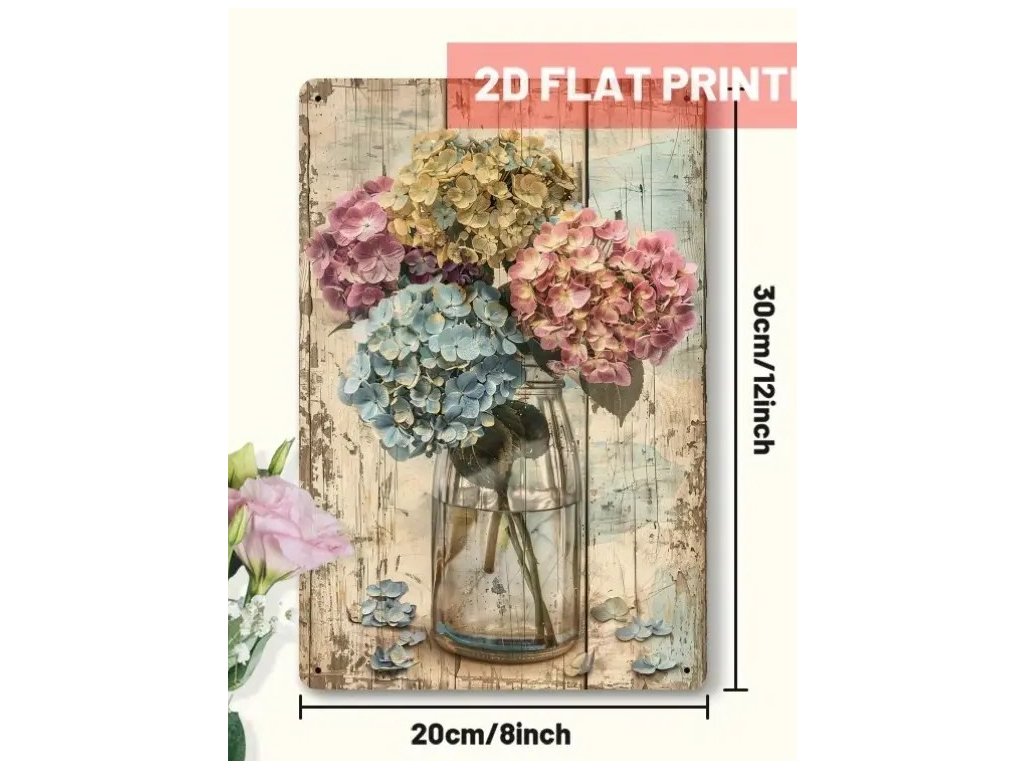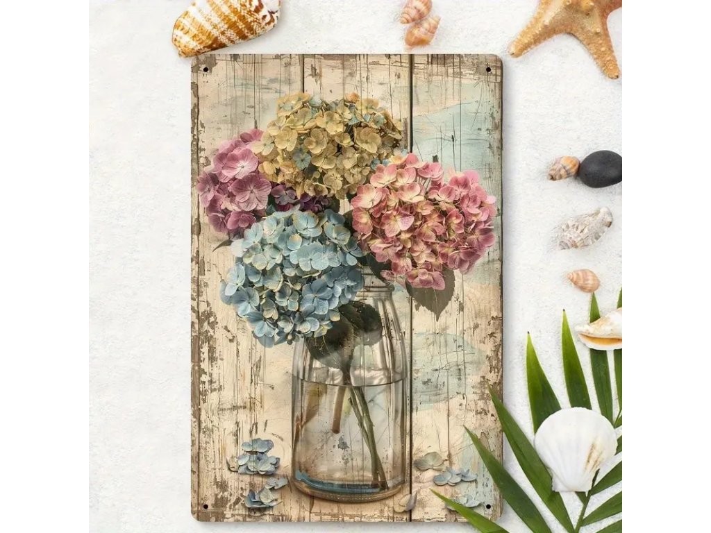 Nástěnná kovová cedule. Hortenzie 30 x 20 cm