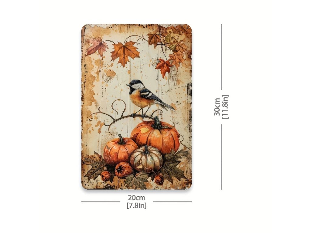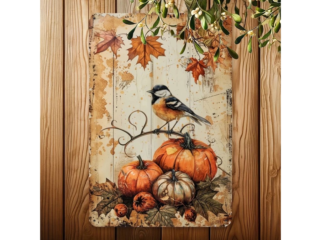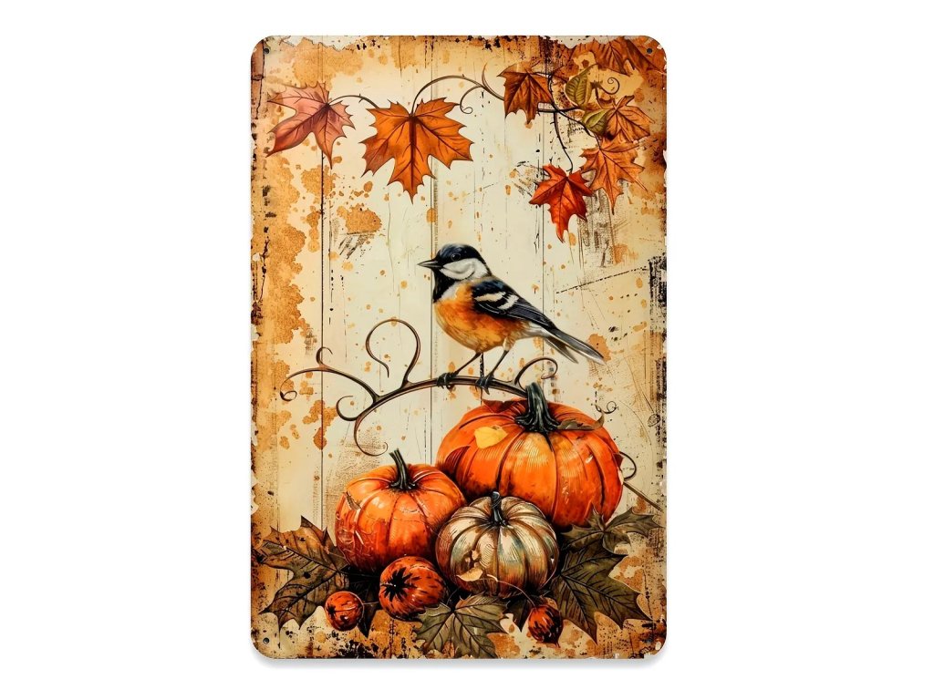 Nástěnná kovová cedule Dýně se sýkorkou 30 x 20 cm