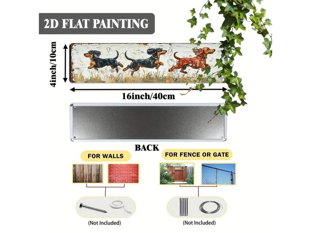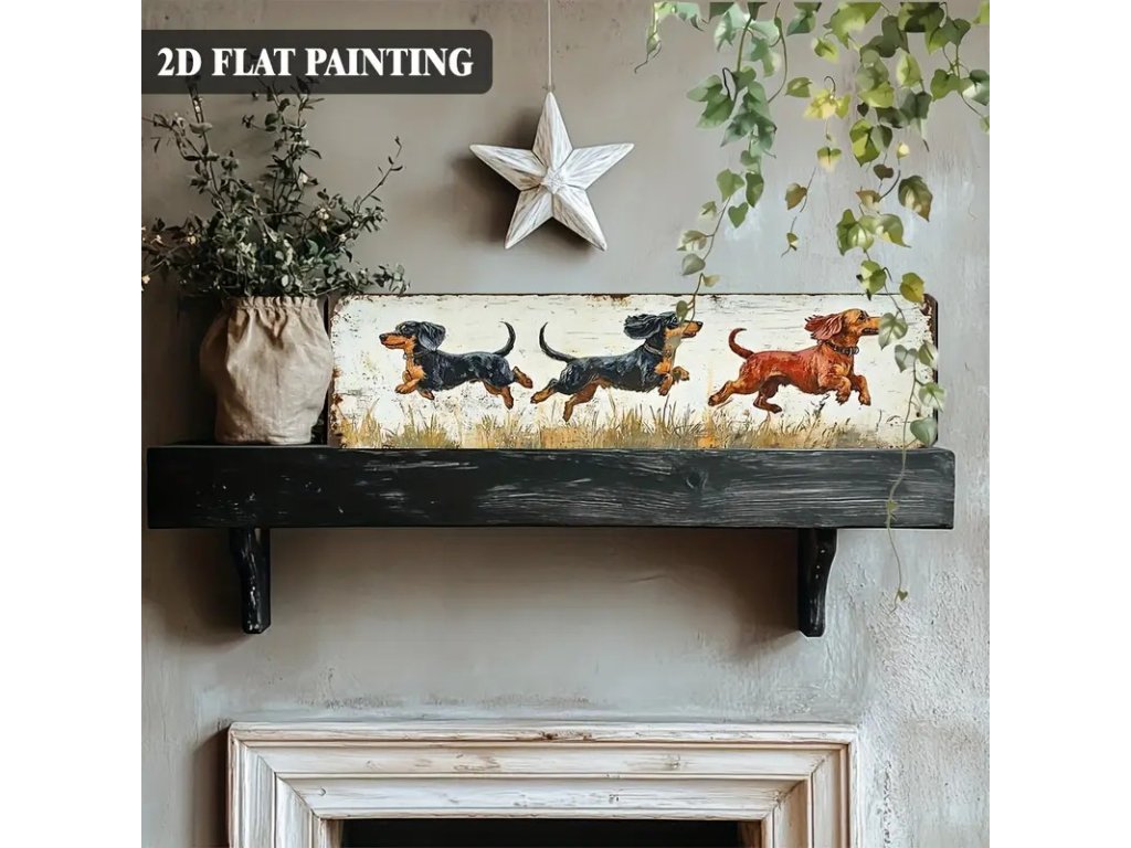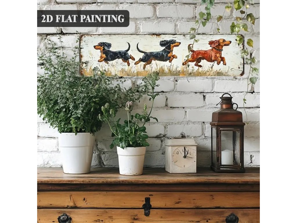 Nástěnná kovová cedule Jezevčíci 40 x 10 cm.