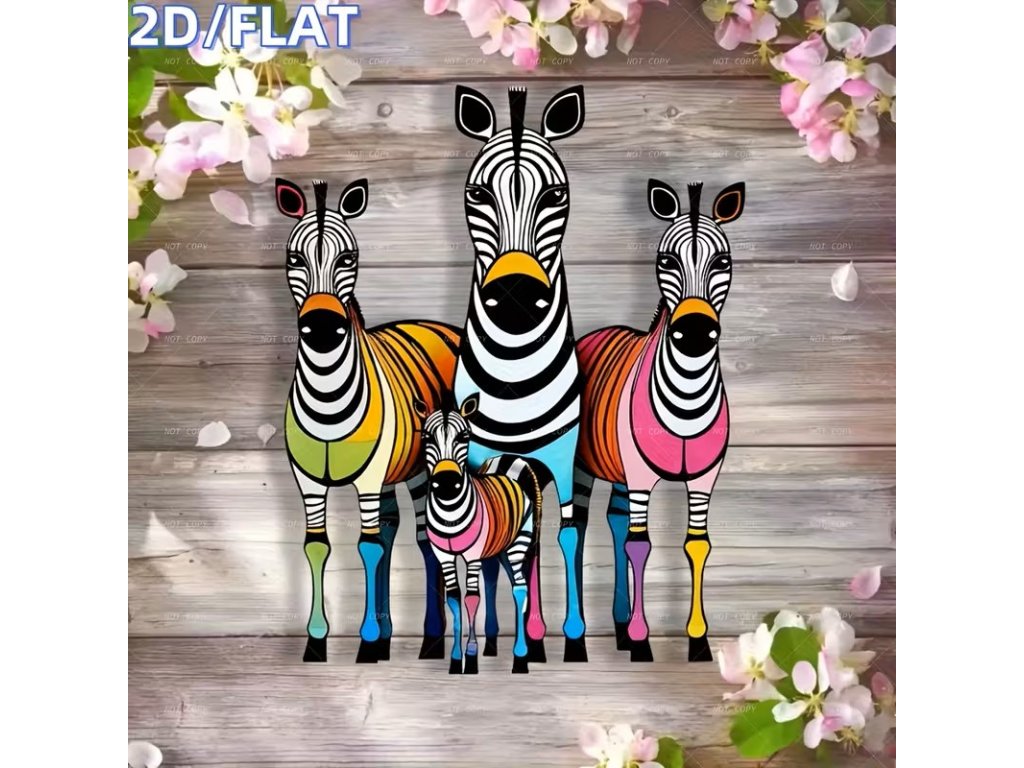 Nástěnné kovové umění. Barevné zebry. 30 x 30 cm