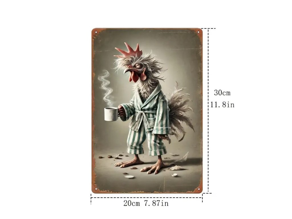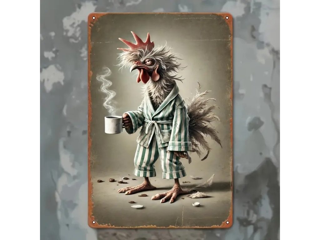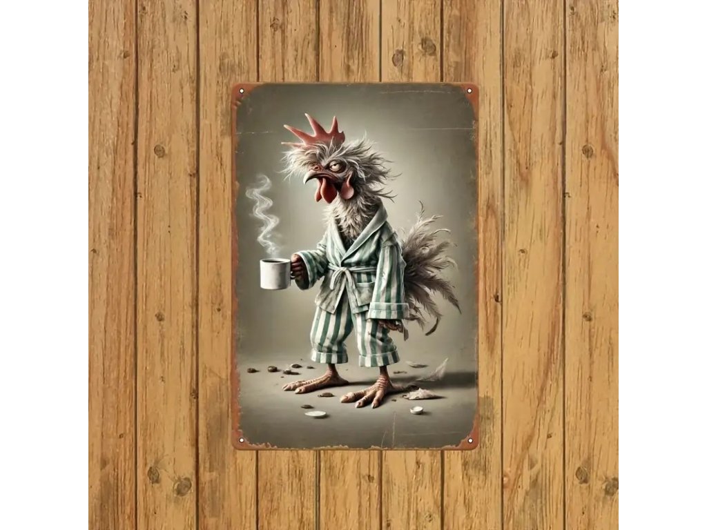 RETRO PLECHOVÁ CEDULE KOHOUT S KÁVOU