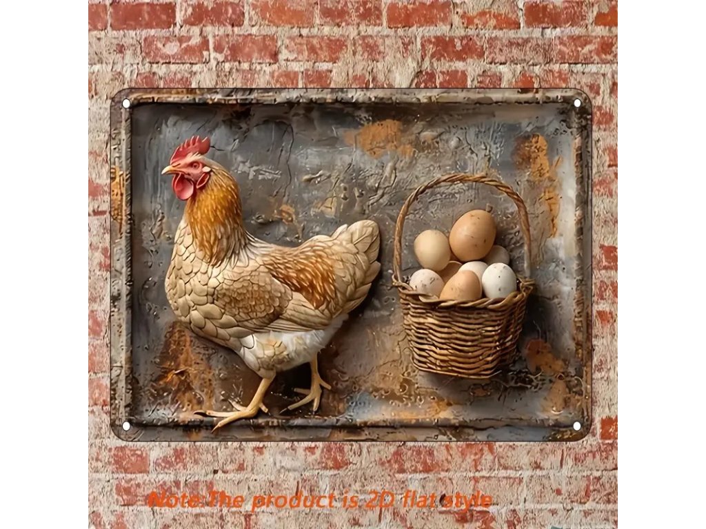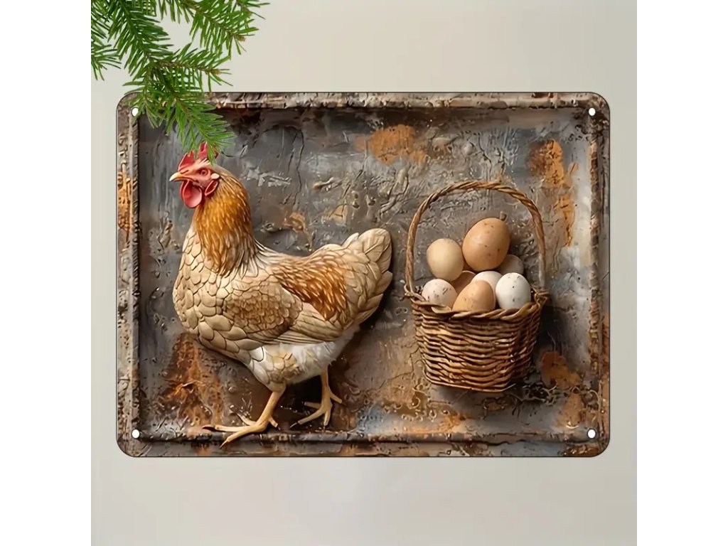 RETRO PLECHOVÁ CEDULE SLEPICE S VEJCI 20 x 30 cm. Vhodné do interiéru i ven