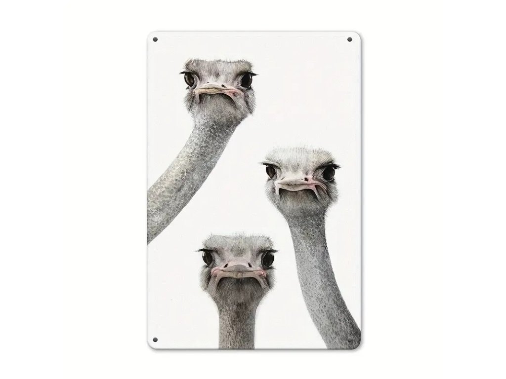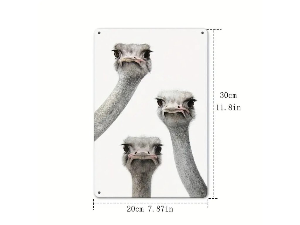 Kovová cedule 3 x pštros 30 x 20 cm. POŠKOZENO