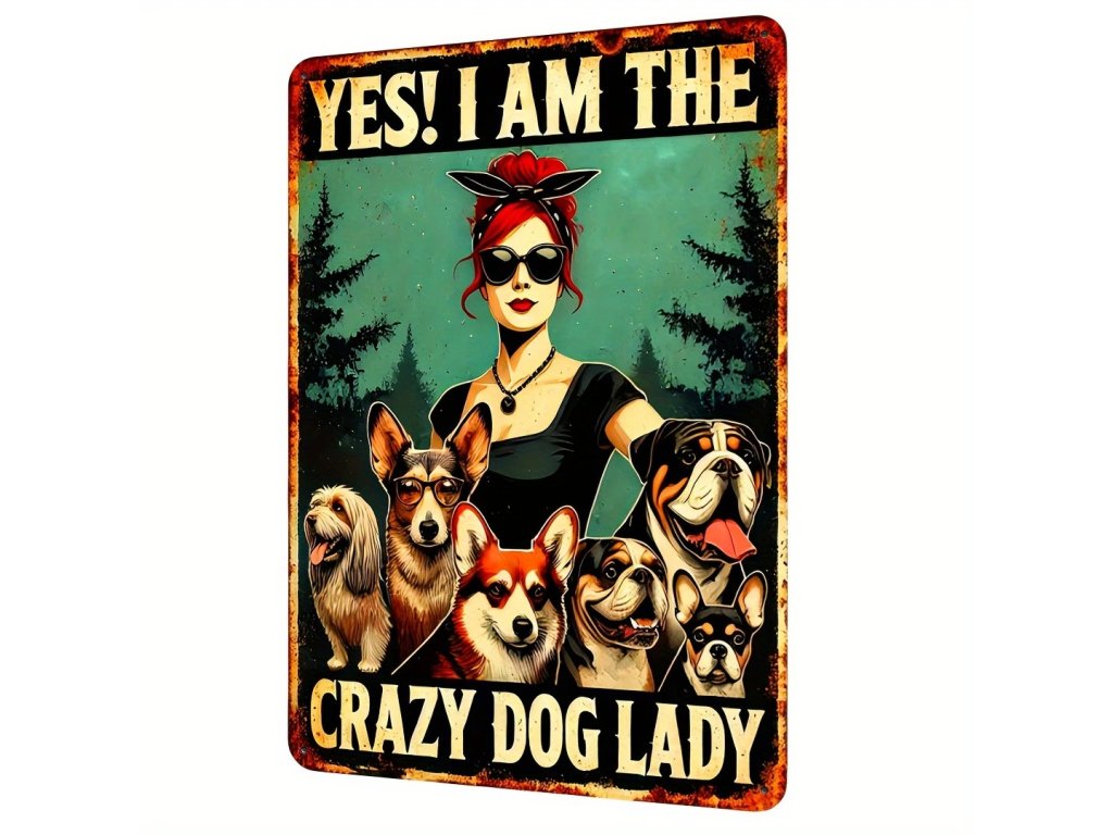 Kovová cedule Dáma se psi - 20 x 30 cm. POŠKOZENO