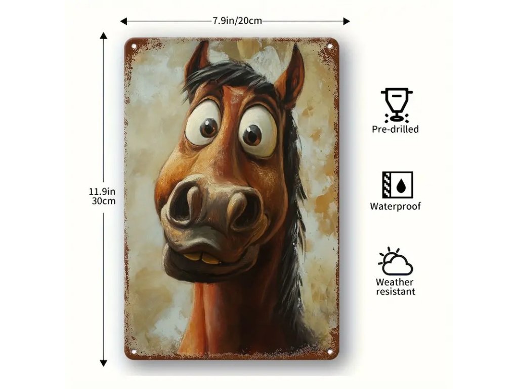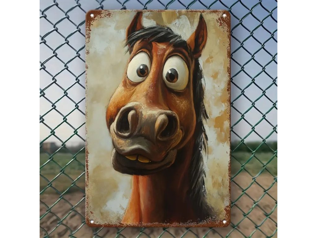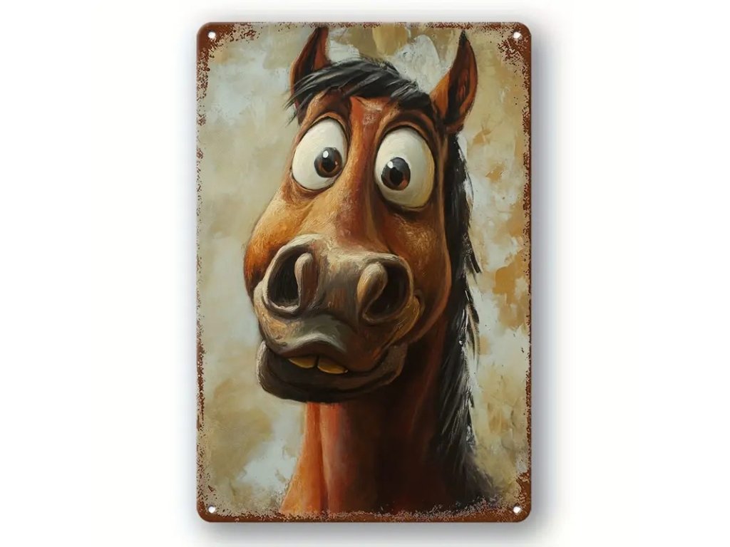 Kovová cedule Vykulený kůň 30 x 20 cm. Vhodné do interiéru i ven