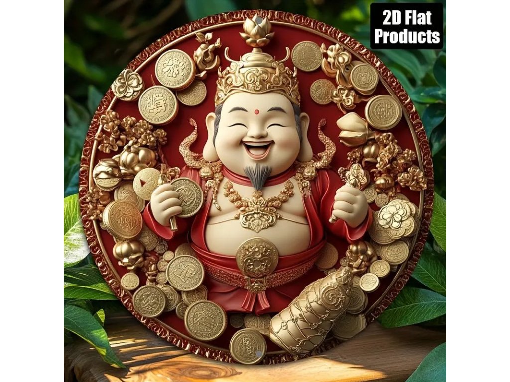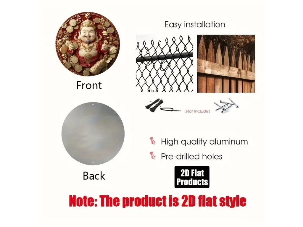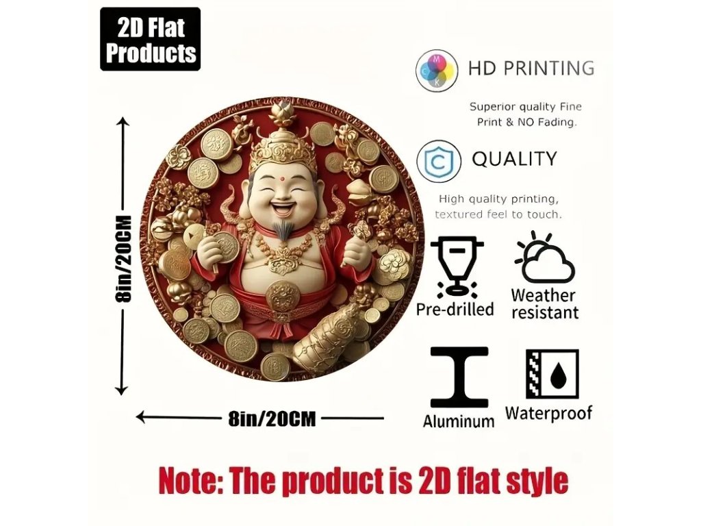 Kovová kulatá cedule. Buddha. Průměr 20 cm
