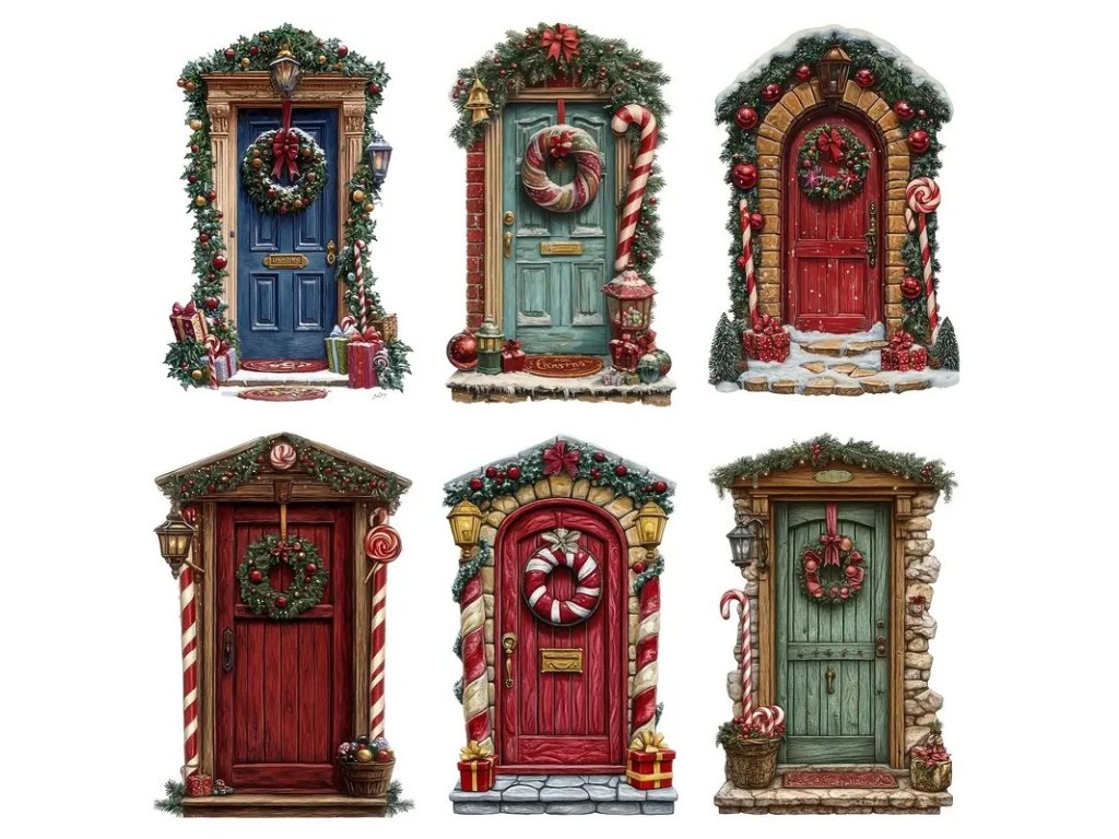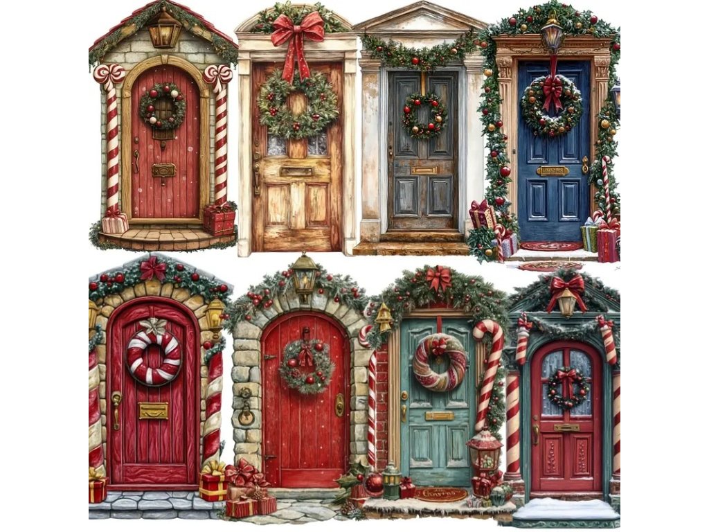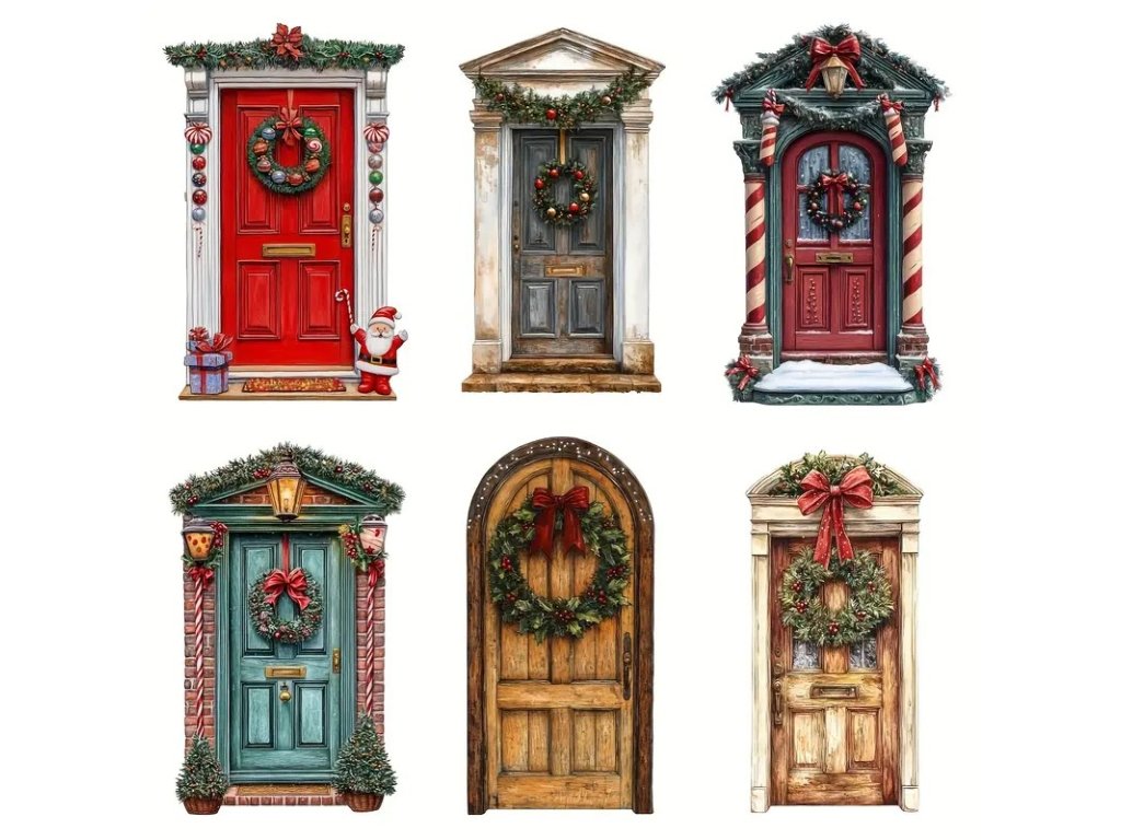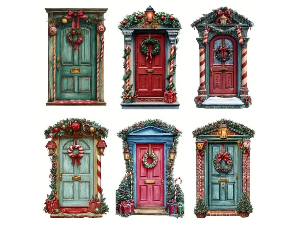 Mini nálepky Ozdobené vánoční dveře 30 kusů
