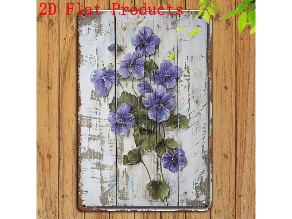 Nástěnná kovová cedule. Fialky 30 x 20 cm