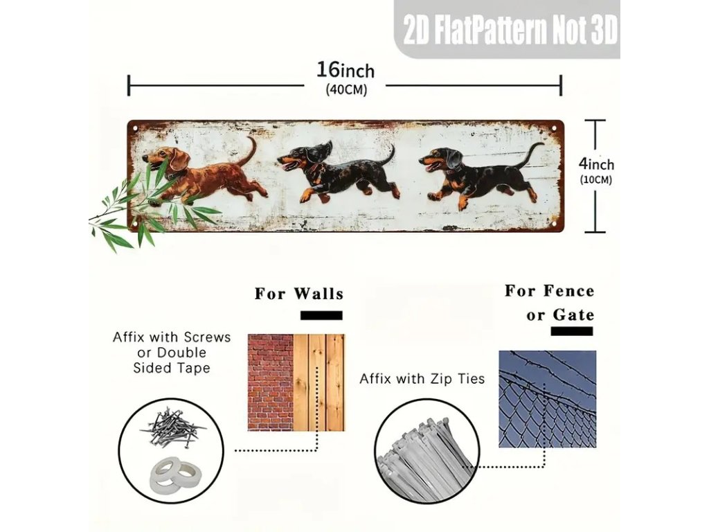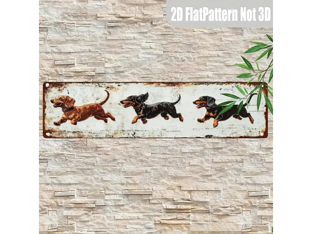 Nástěnná kovová cedule Jezevčíci 40 x 10 cm