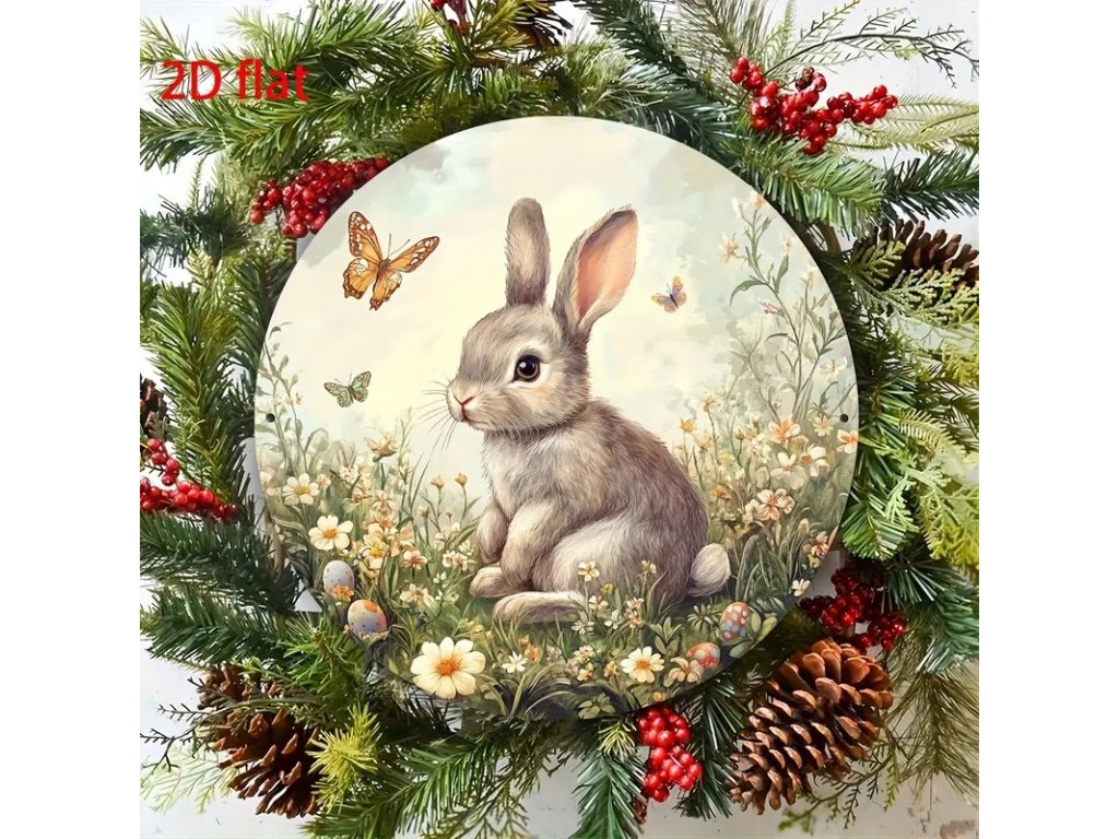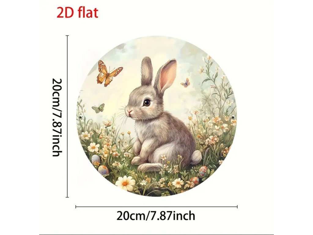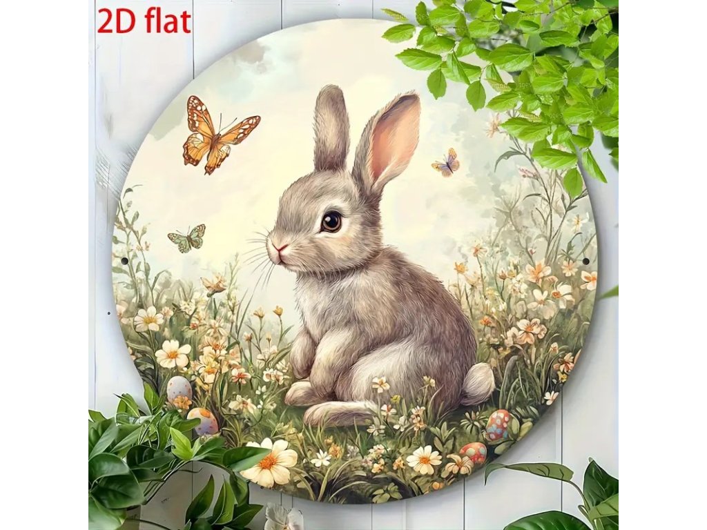 Nástěnná kovová cedule Králíček a květiny průměr 20 cm