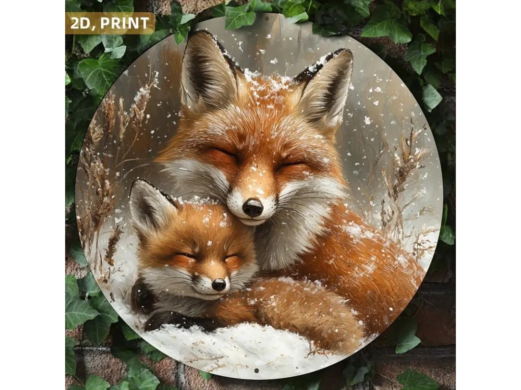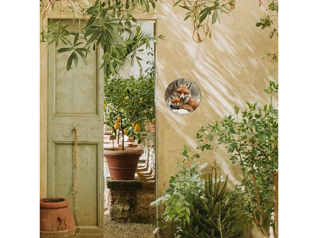 Nástěnná kovová cedule Lišky průměr 20 cm