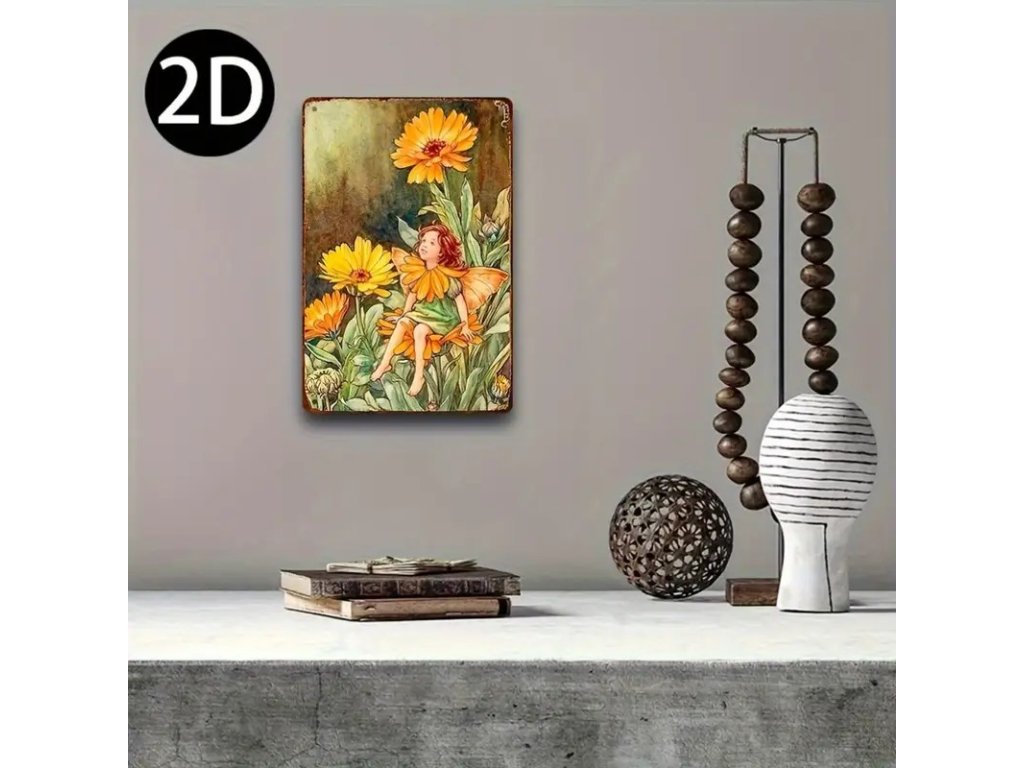 Plechová cedule Andělíček a květiny 30 x 20 cm