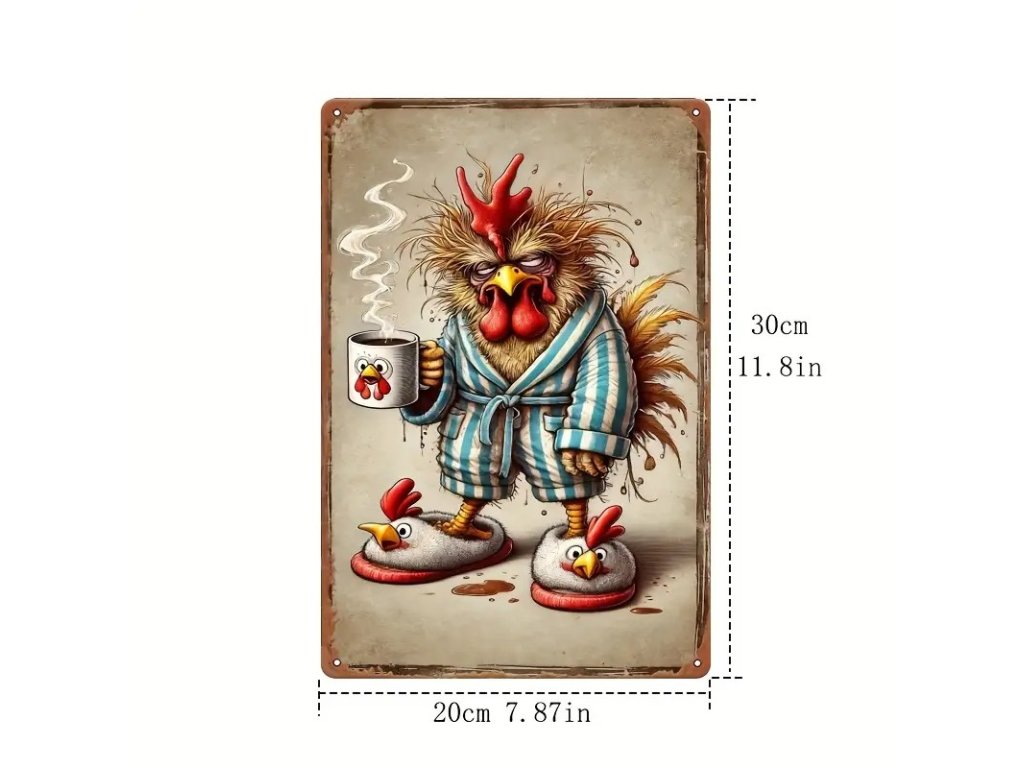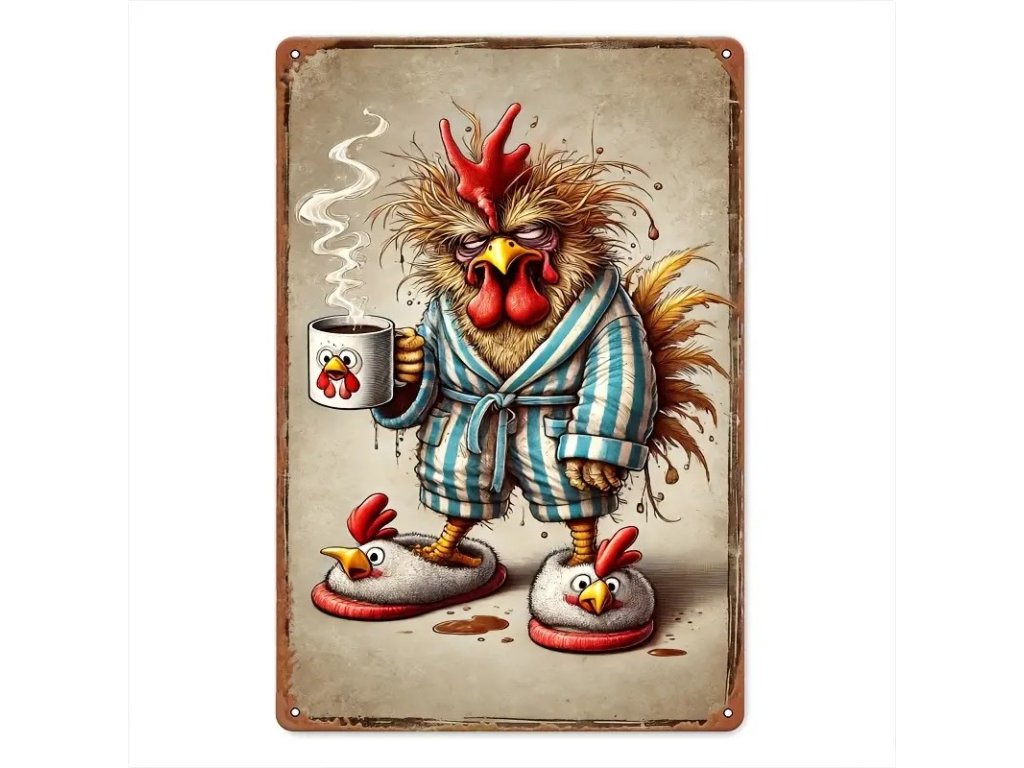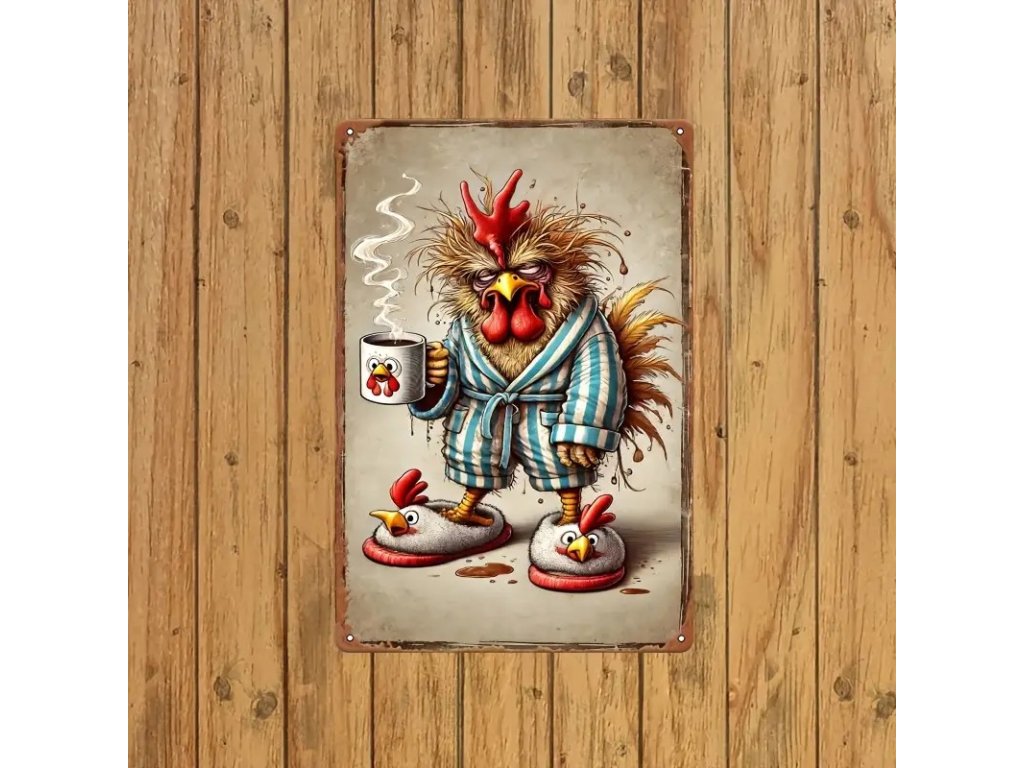 Plechová cedule Kohout vstává brzo ráno 30 x 20cm
