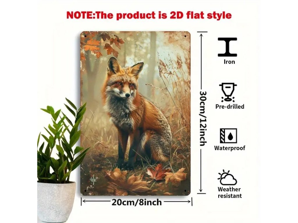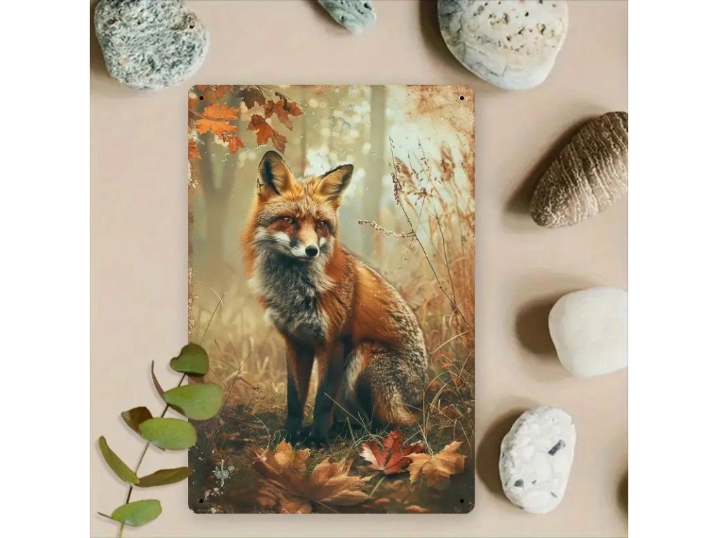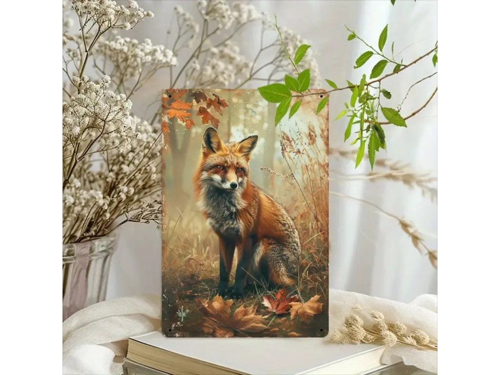 Plechová cedule Liška v podzimním lese 30 x 20 cm