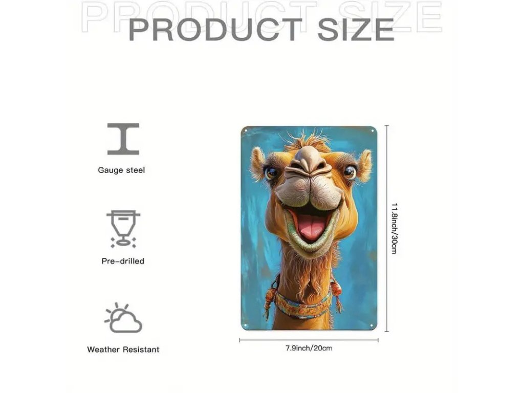 Plechová cedule Velbloud se řehní 30 x 20 cm. Krásný dárek. Bude se na vás smát každý den. Vhodný do interiéru i ven