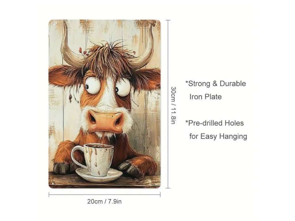 Plechová cedule Veselá káva s krávou