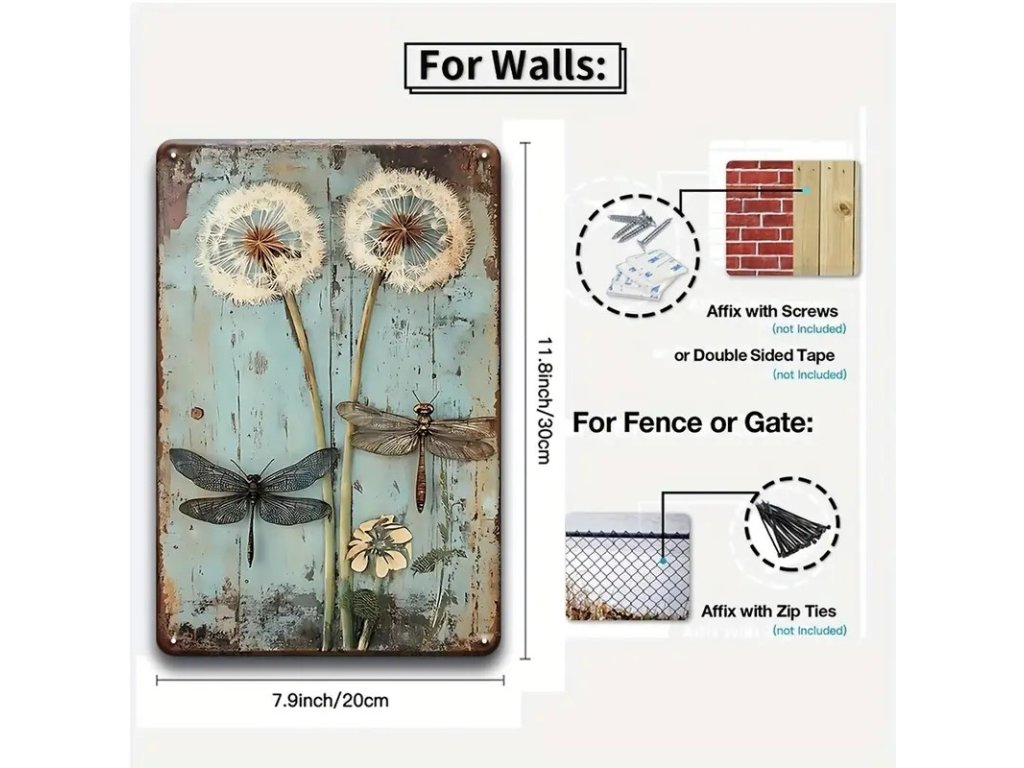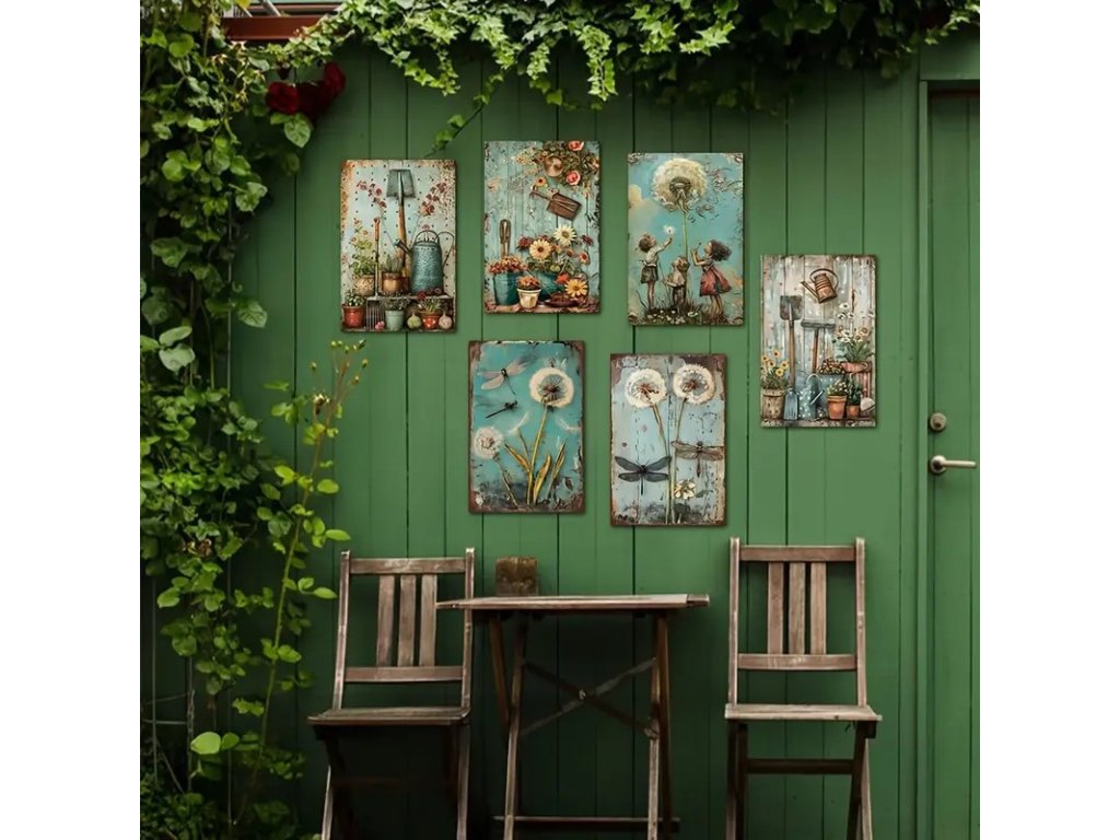 Soubor 6 kusů plechových cedulí. Pampelišky a květiny 20 x 30 cm