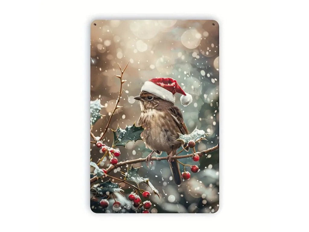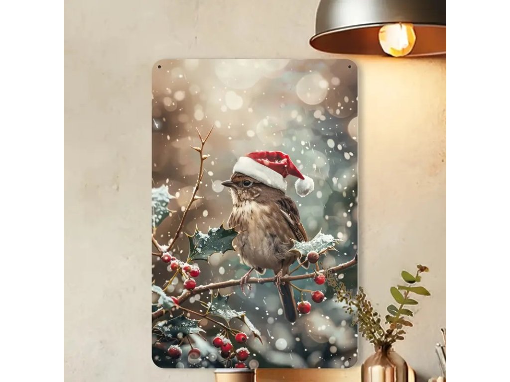Zimní plechová cedule Vrabčák 30 x 20 cm